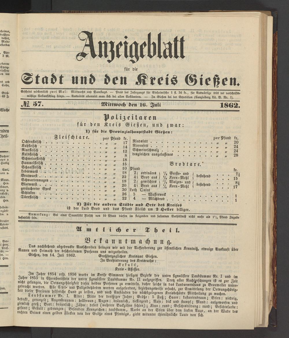 Anzeigeblatt für die Provinzialhauptstadt Gießen. 1840-1867