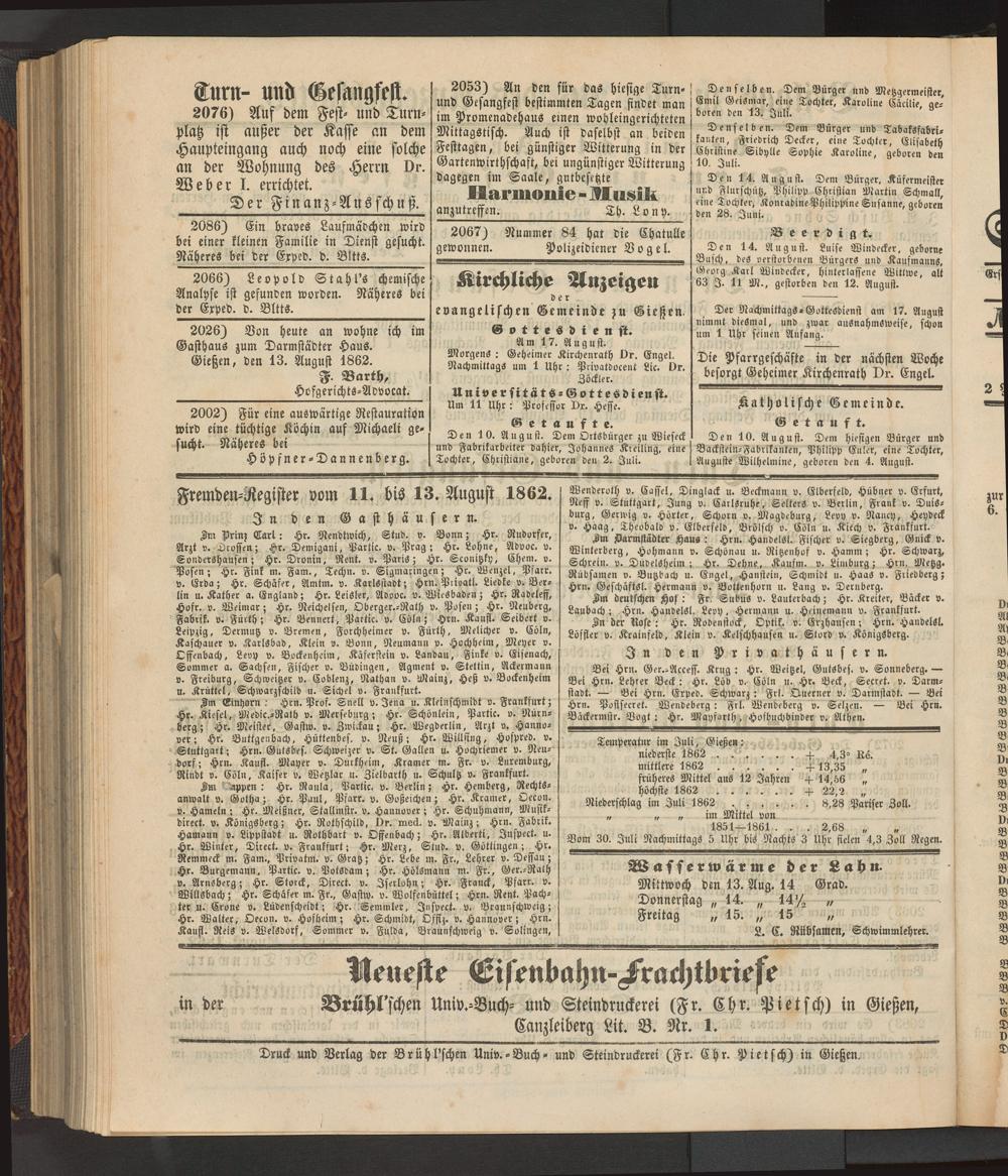 Anzeigeblatt für die Provinzialhauptstadt Gießen. 1840-1867