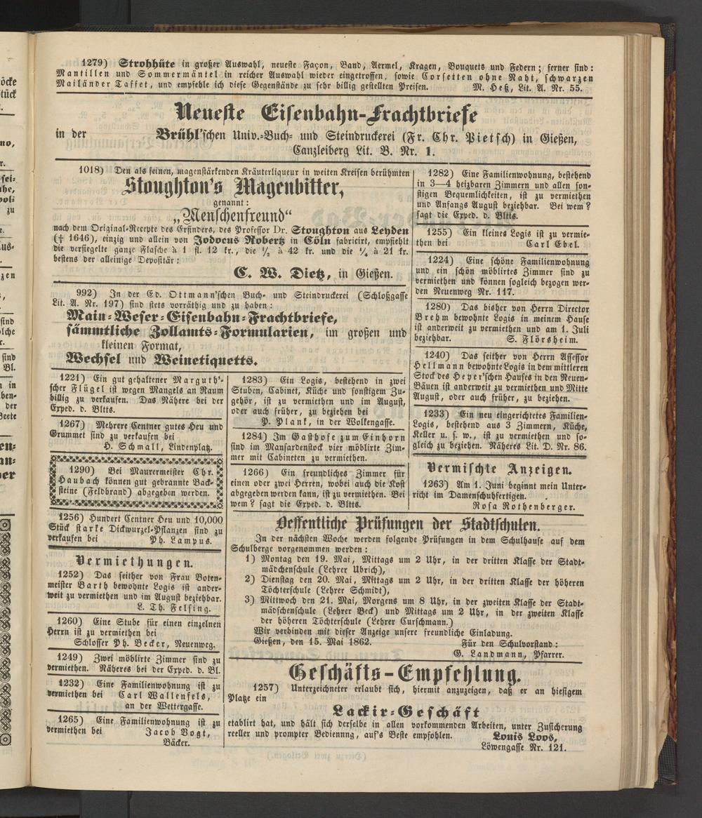 Anzeigeblatt für die Provinzialhauptstadt Gießen. 1840-1867