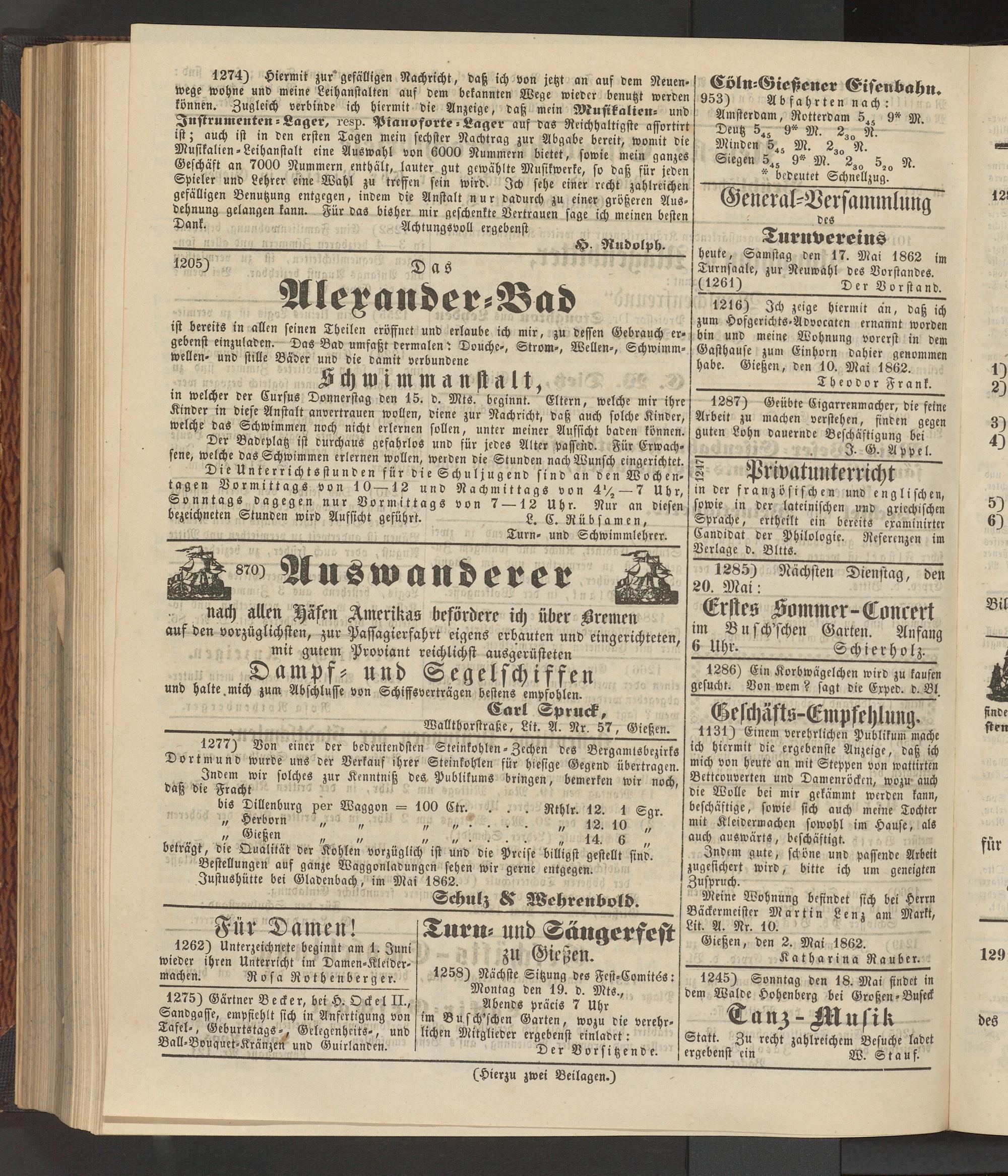 Anzeigeblatt für die Provinzialhauptstadt Gießen. 1840-1867