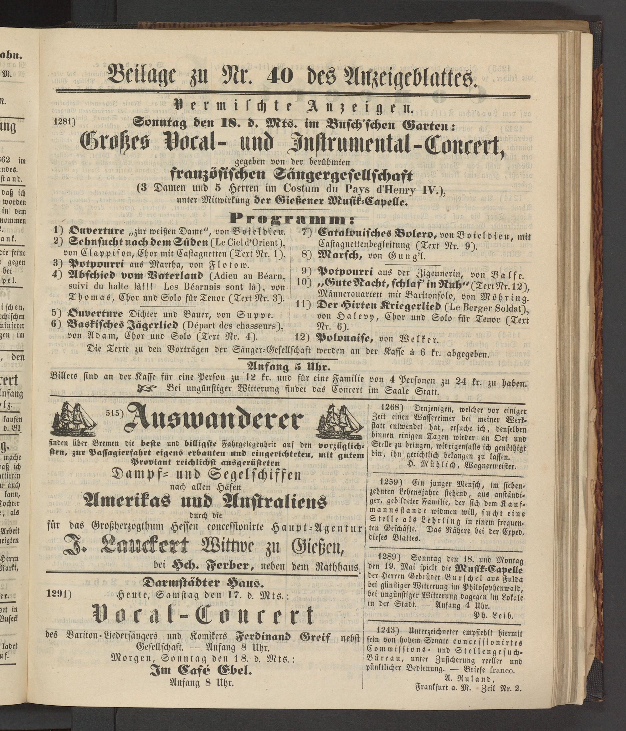 Anzeigeblatt für die Provinzialhauptstadt Gießen. 1840-1867