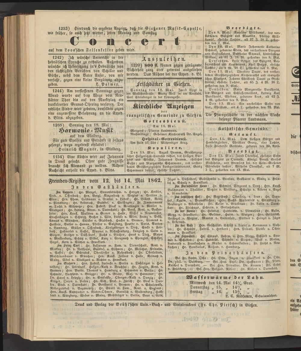 Anzeigeblatt für die Provinzialhauptstadt Gießen. 1840-1867