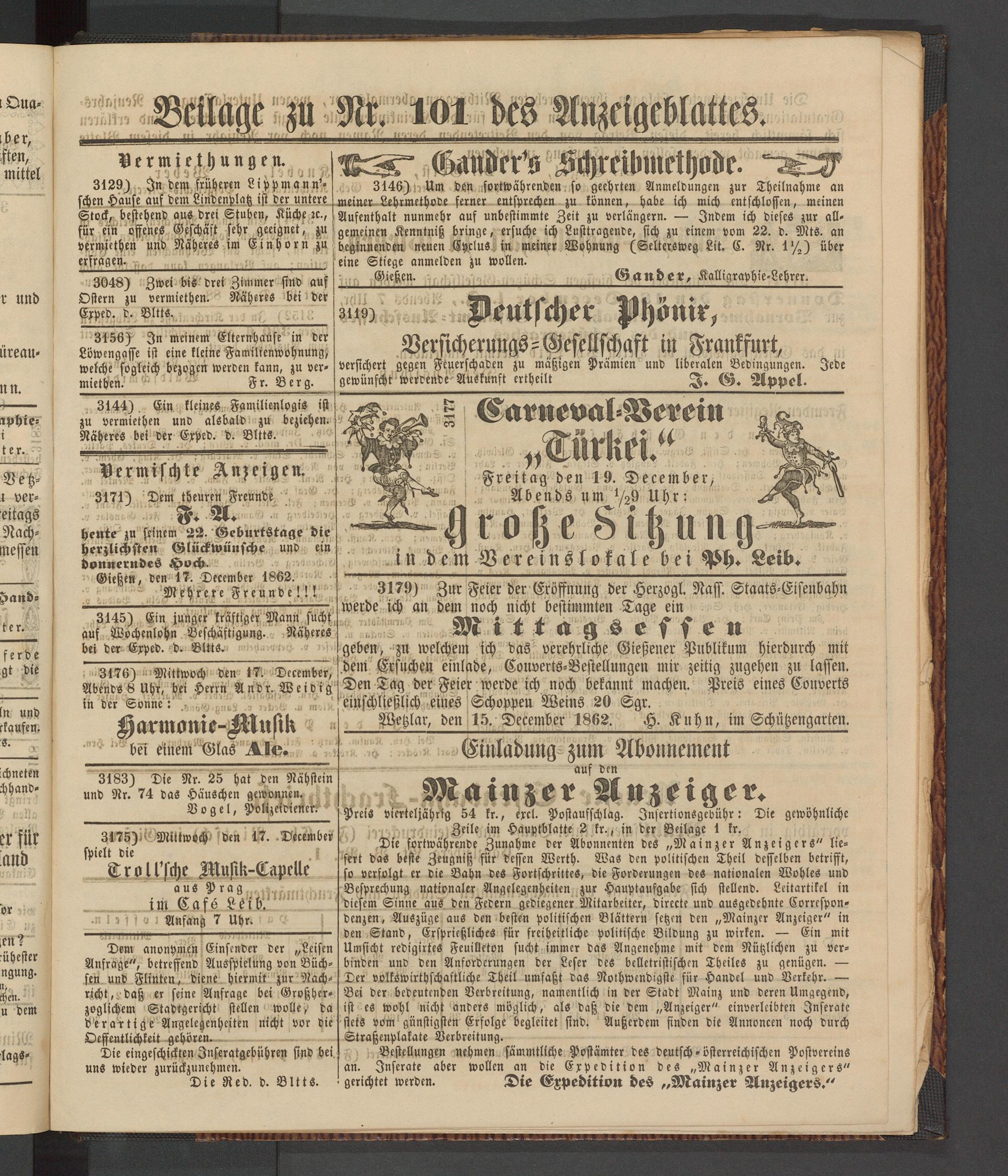 Anzeigeblatt für die Provinzialhauptstadt Gießen. 1840-1867