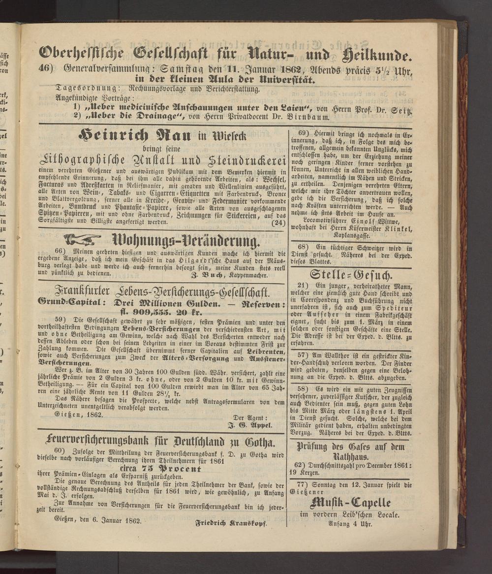Anzeigeblatt für die Provinzialhauptstadt Gießen. 1840-1867
