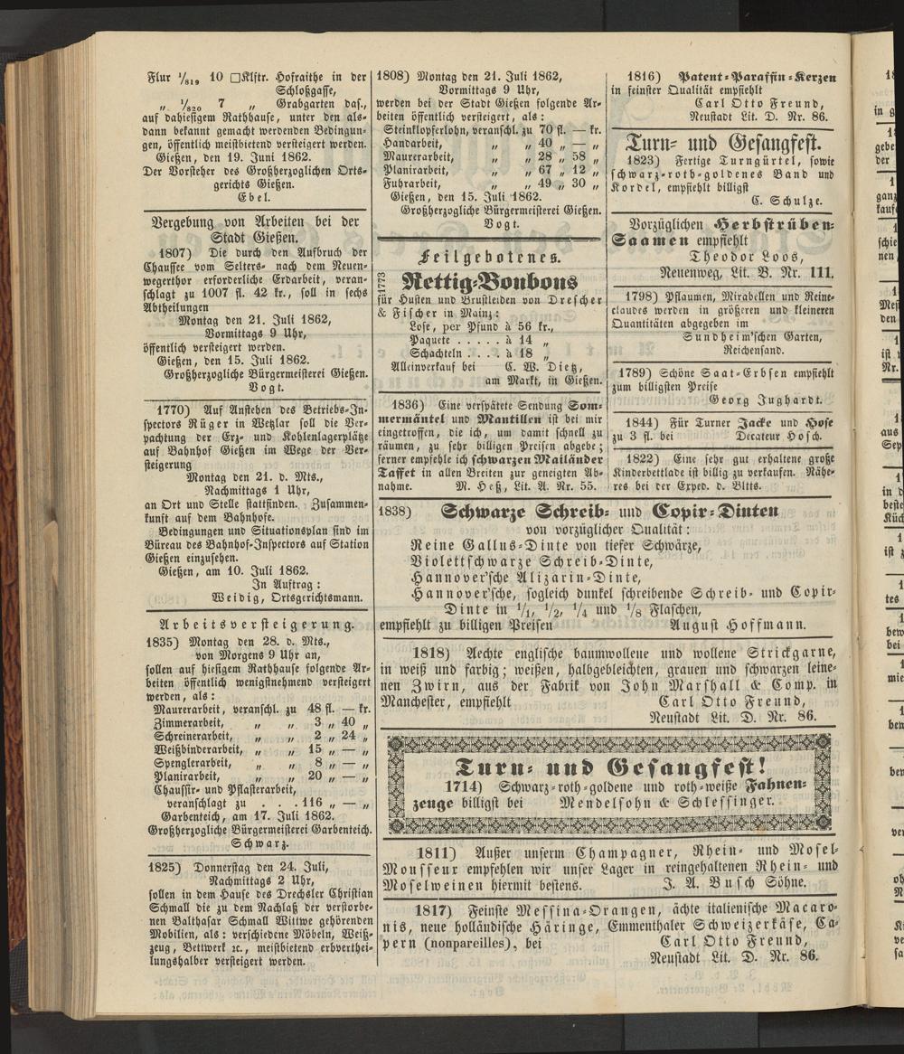 Anzeigeblatt für die Provinzialhauptstadt Gießen. 1840-1867