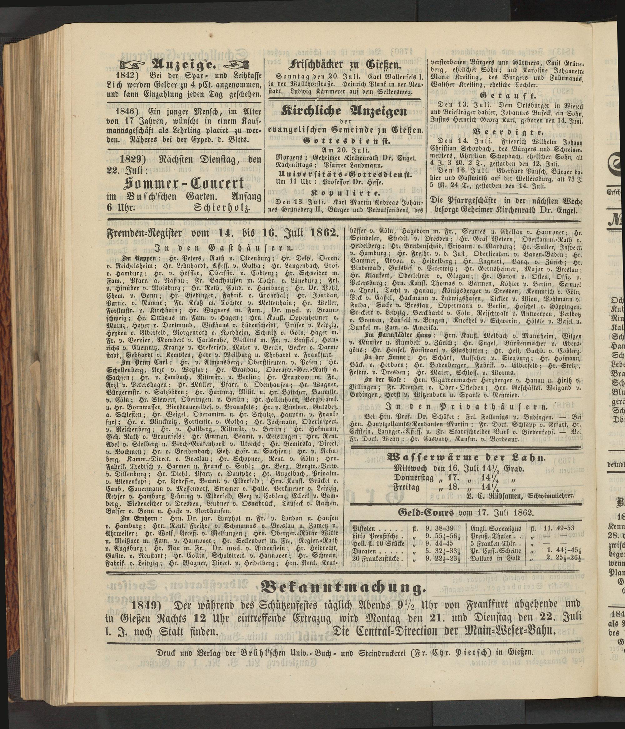 Anzeigeblatt für die Provinzialhauptstadt Gießen. 1840-1867