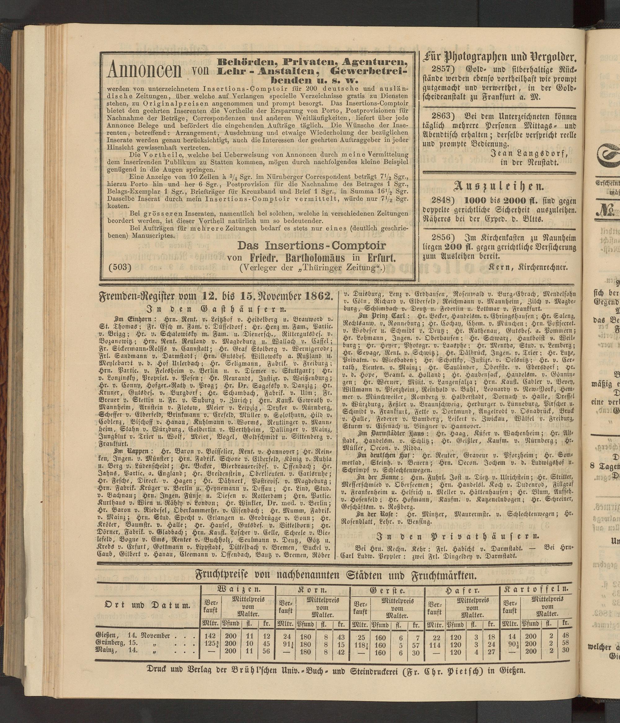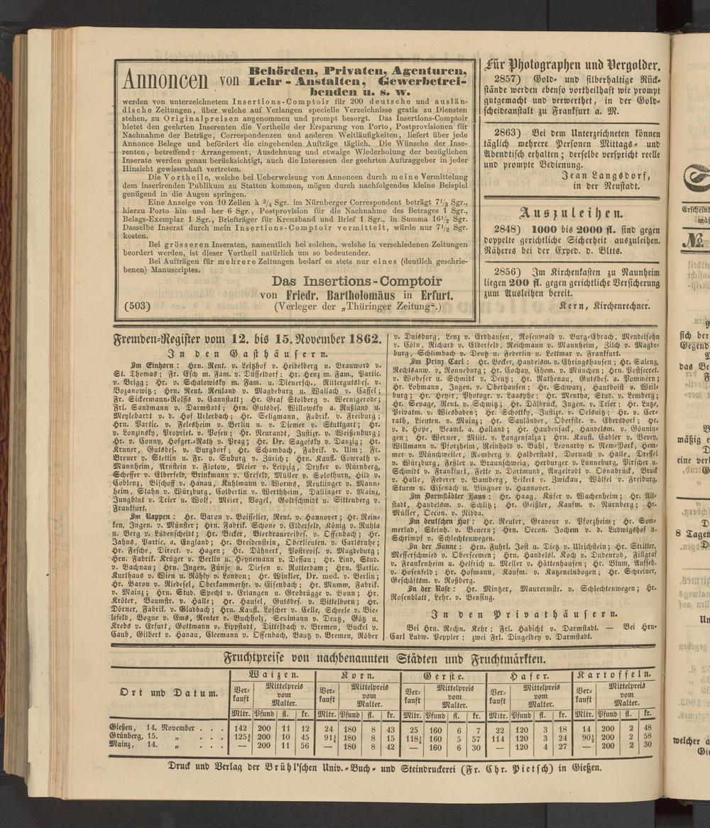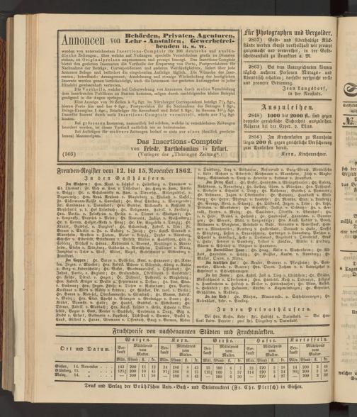 Anzeigeblatt für die Provinzialhauptstadt Gießen. 1840-1867