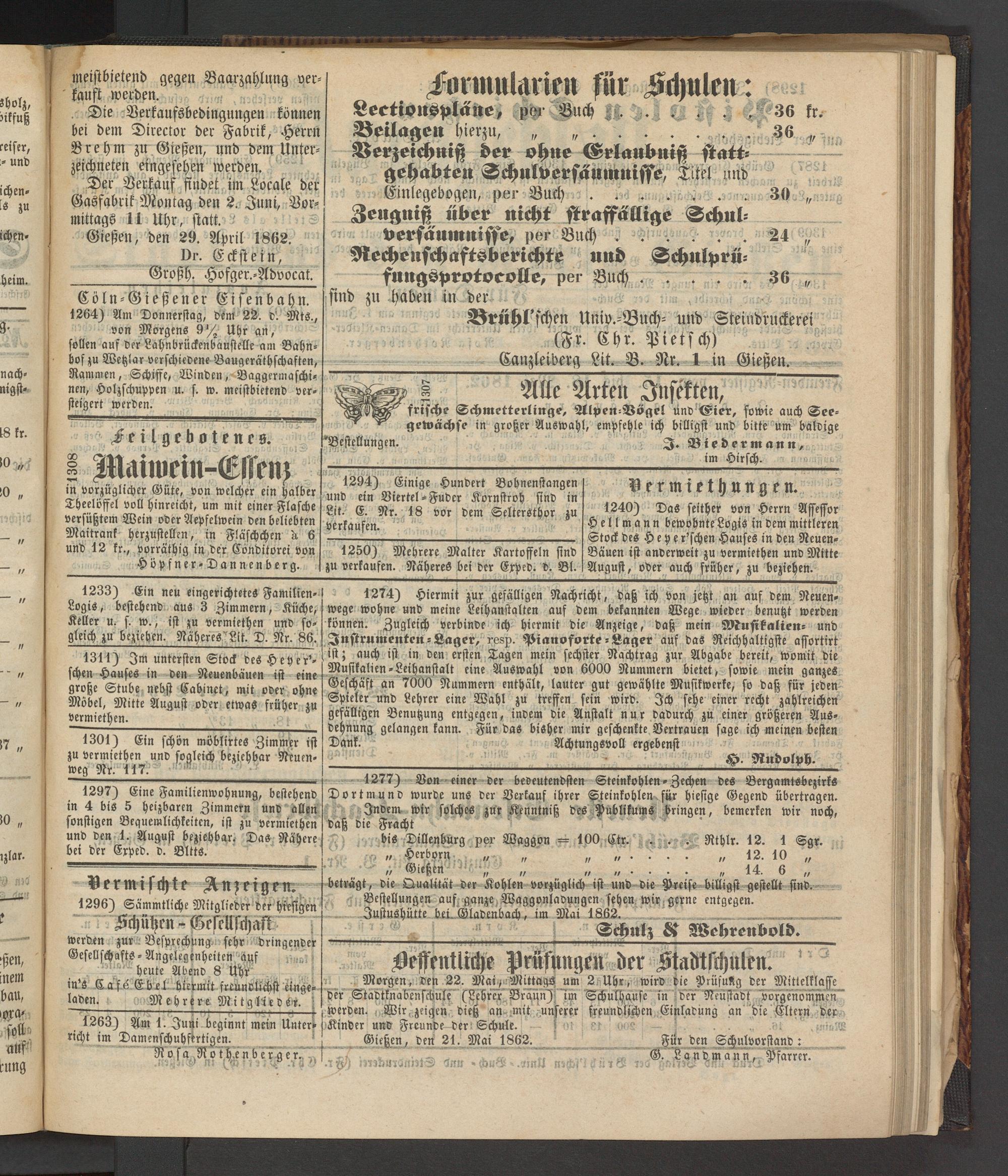 Anzeigeblatt für die Provinzialhauptstadt Gießen. 1840-1867