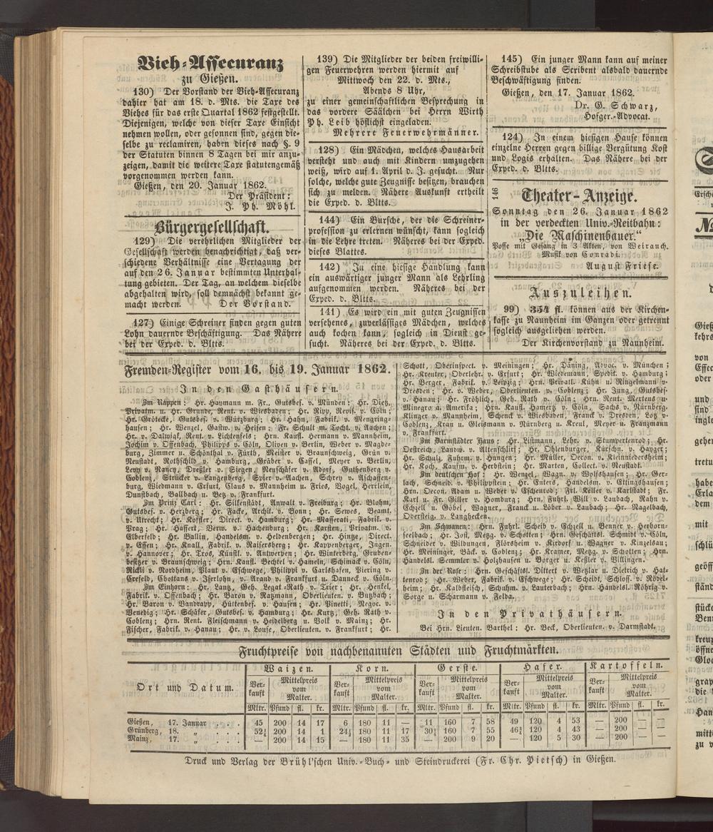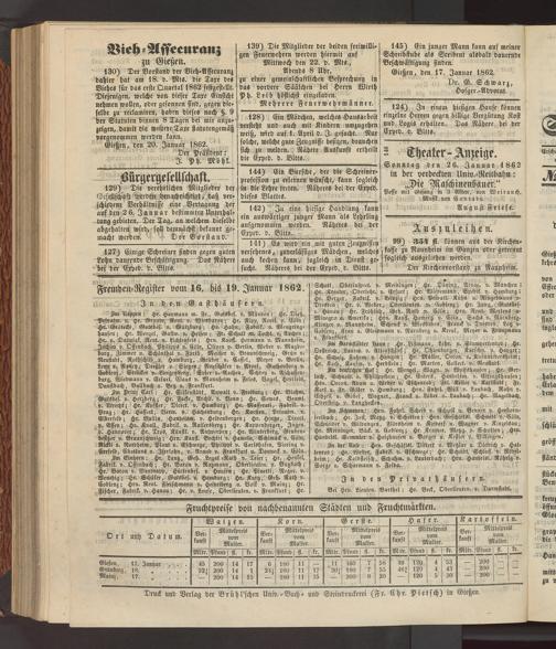 Anzeigeblatt für die Provinzialhauptstadt Gießen. 1840-1867