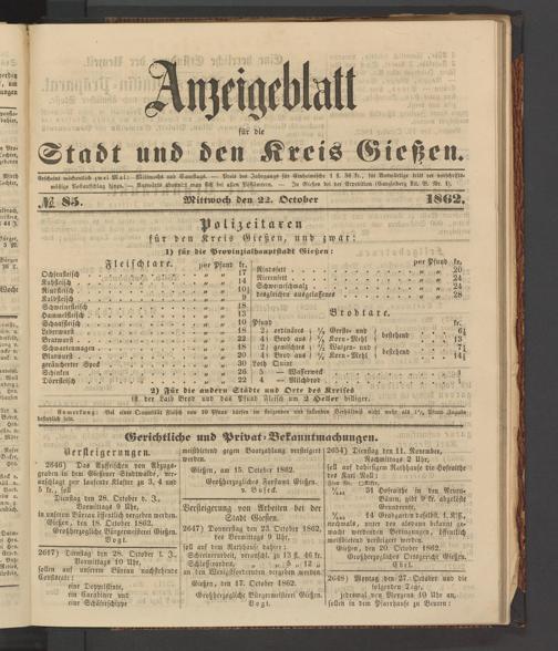 Anzeigeblatt für die Provinzialhauptstadt Gießen. 1840-1867