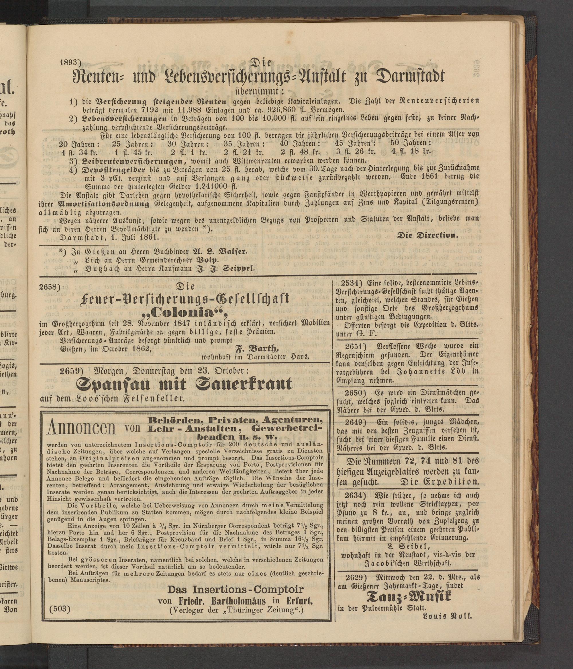 Anzeigeblatt für die Provinzialhauptstadt Gießen. 1840-1867