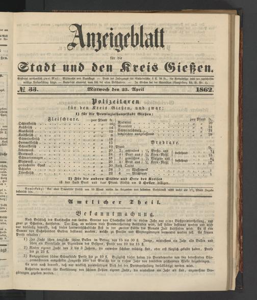 Anzeigeblatt für die Provinzialhauptstadt Gießen. 1840-1867