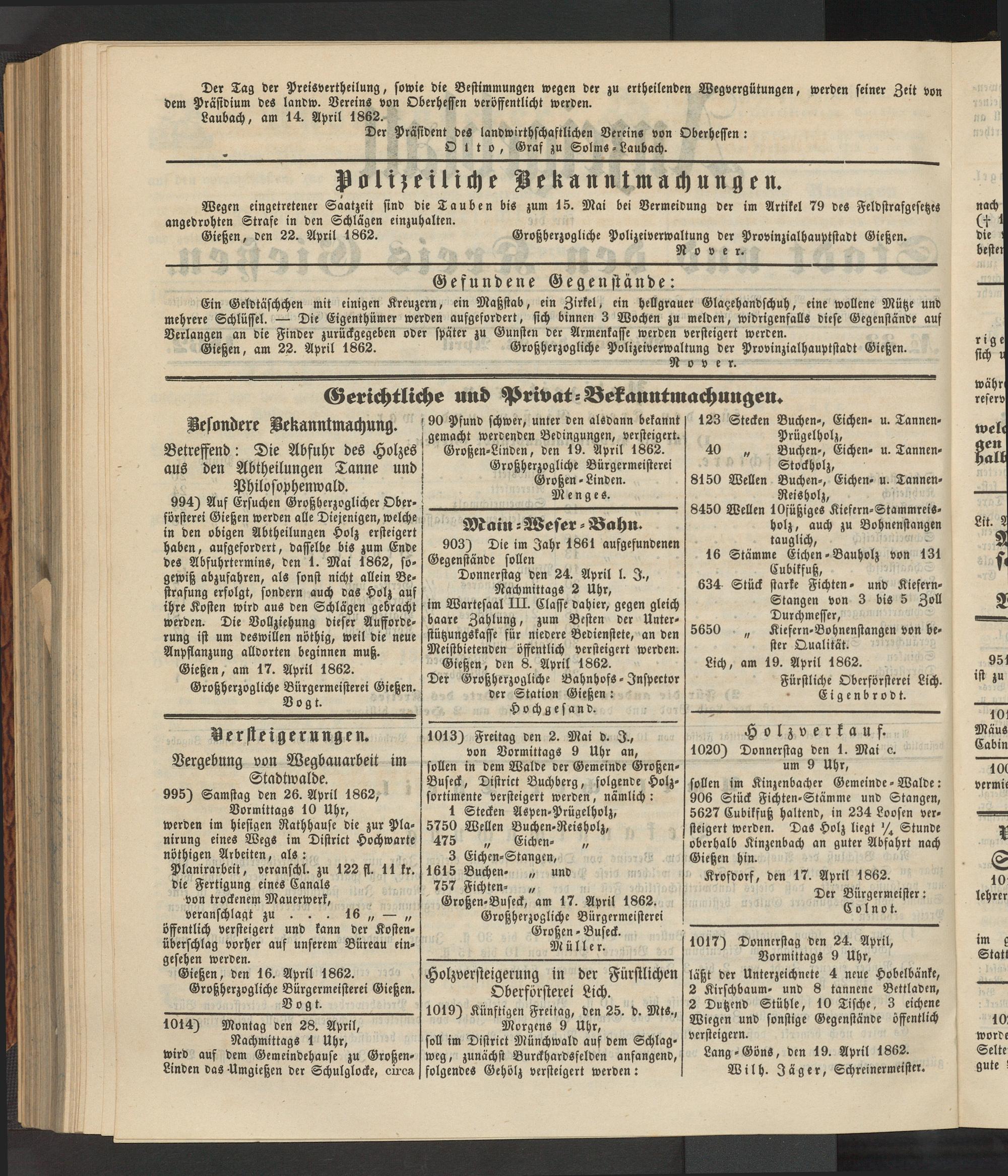 Anzeigeblatt für die Provinzialhauptstadt Gießen. 1840-1867