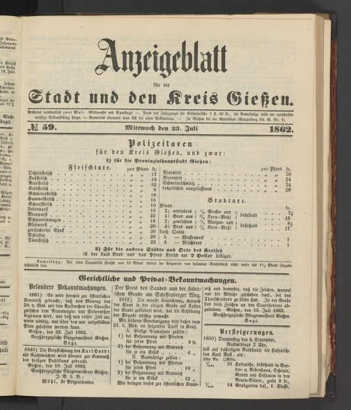 Anzeigeblatt für die Provinzialhauptstadt Gießen. 1840-1867
