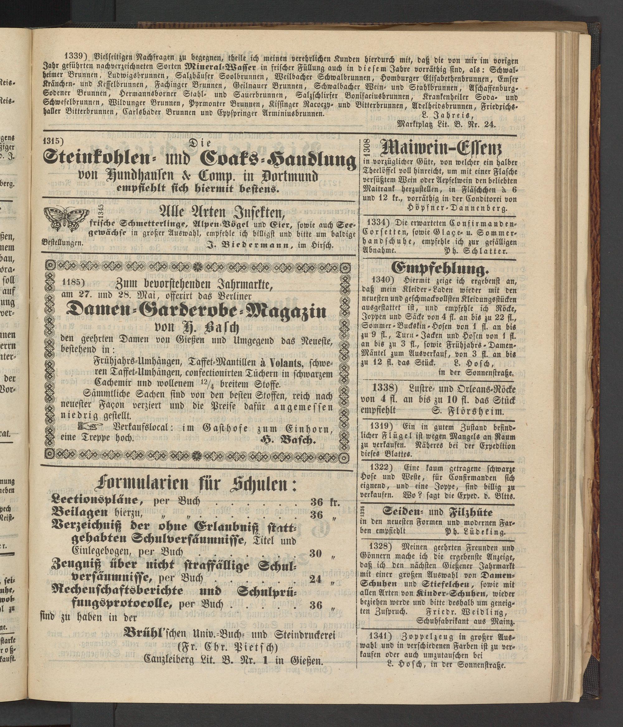 Anzeigeblatt für die Provinzialhauptstadt Gießen. 1840-1867