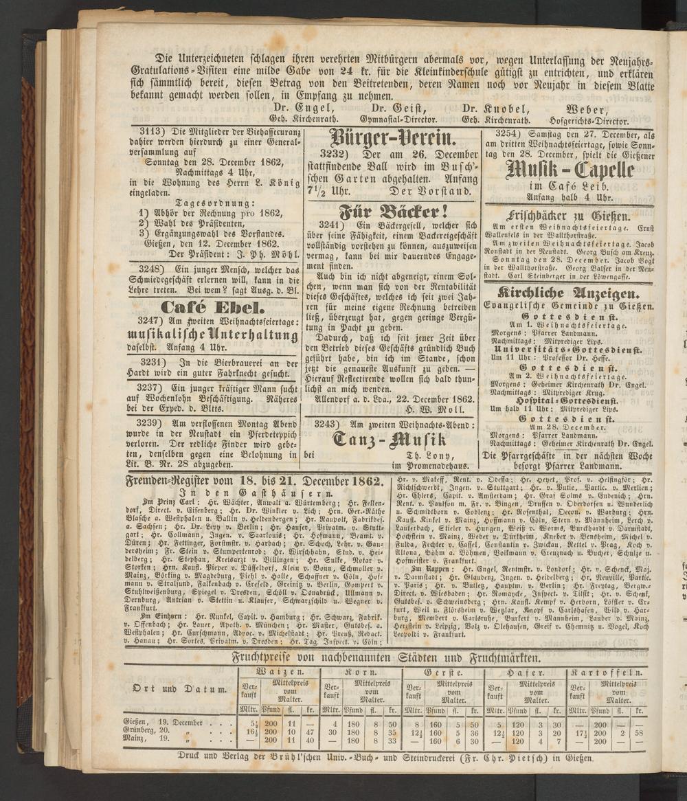 Anzeigeblatt für die Provinzialhauptstadt Gießen. 1840-1867