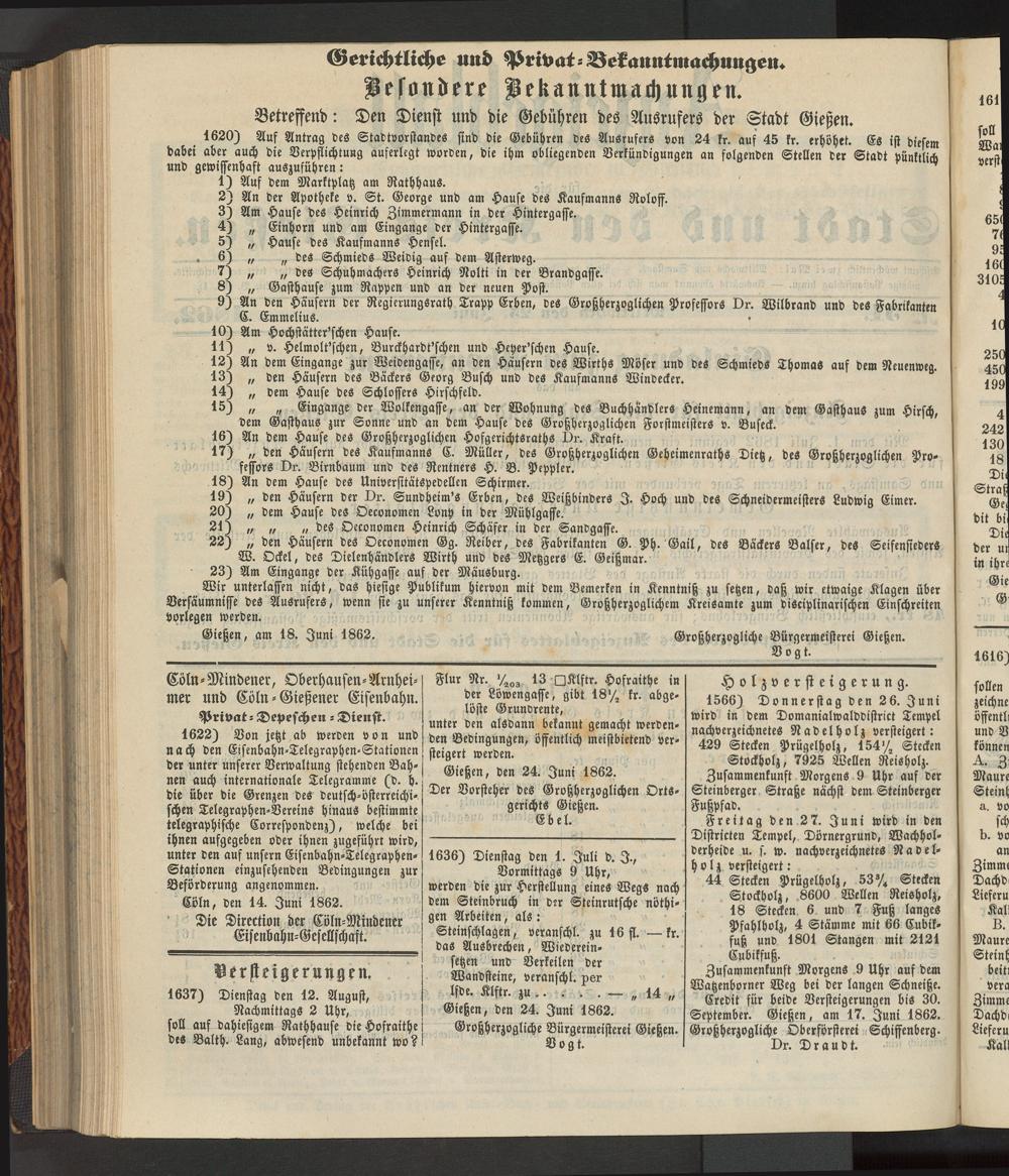 Anzeigeblatt für die Provinzialhauptstadt Gießen. 1840-1867
