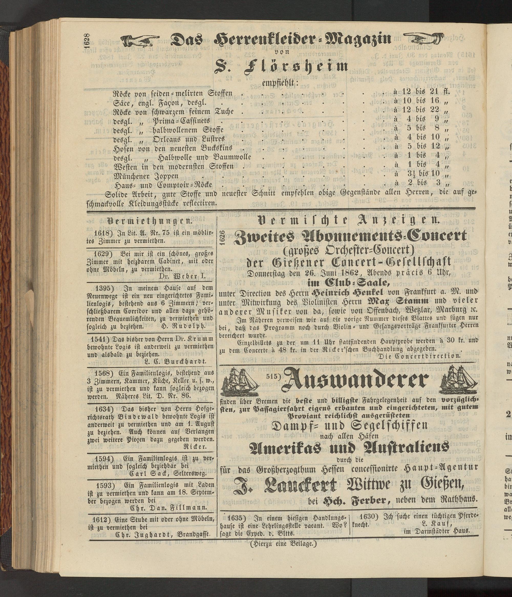 Anzeigeblatt für die Provinzialhauptstadt Gießen. 1840-1867