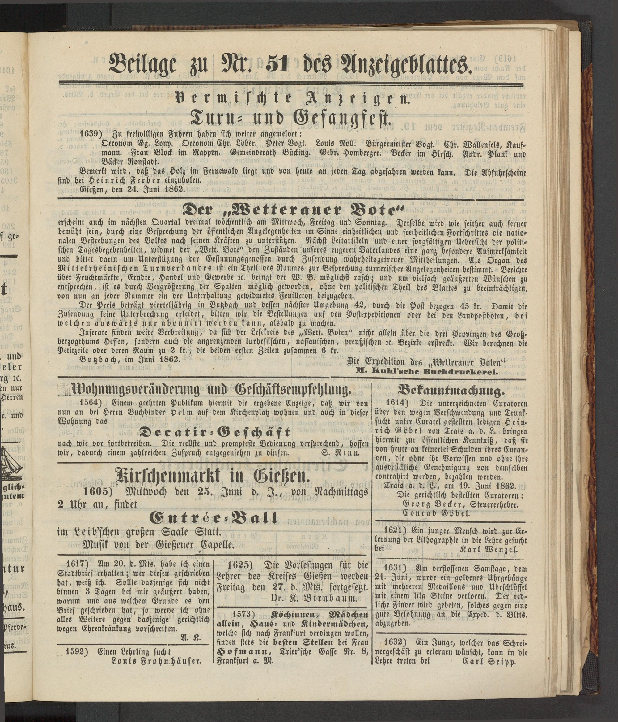 Anzeigeblatt für die Provinzialhauptstadt Gießen. 1840-1867
