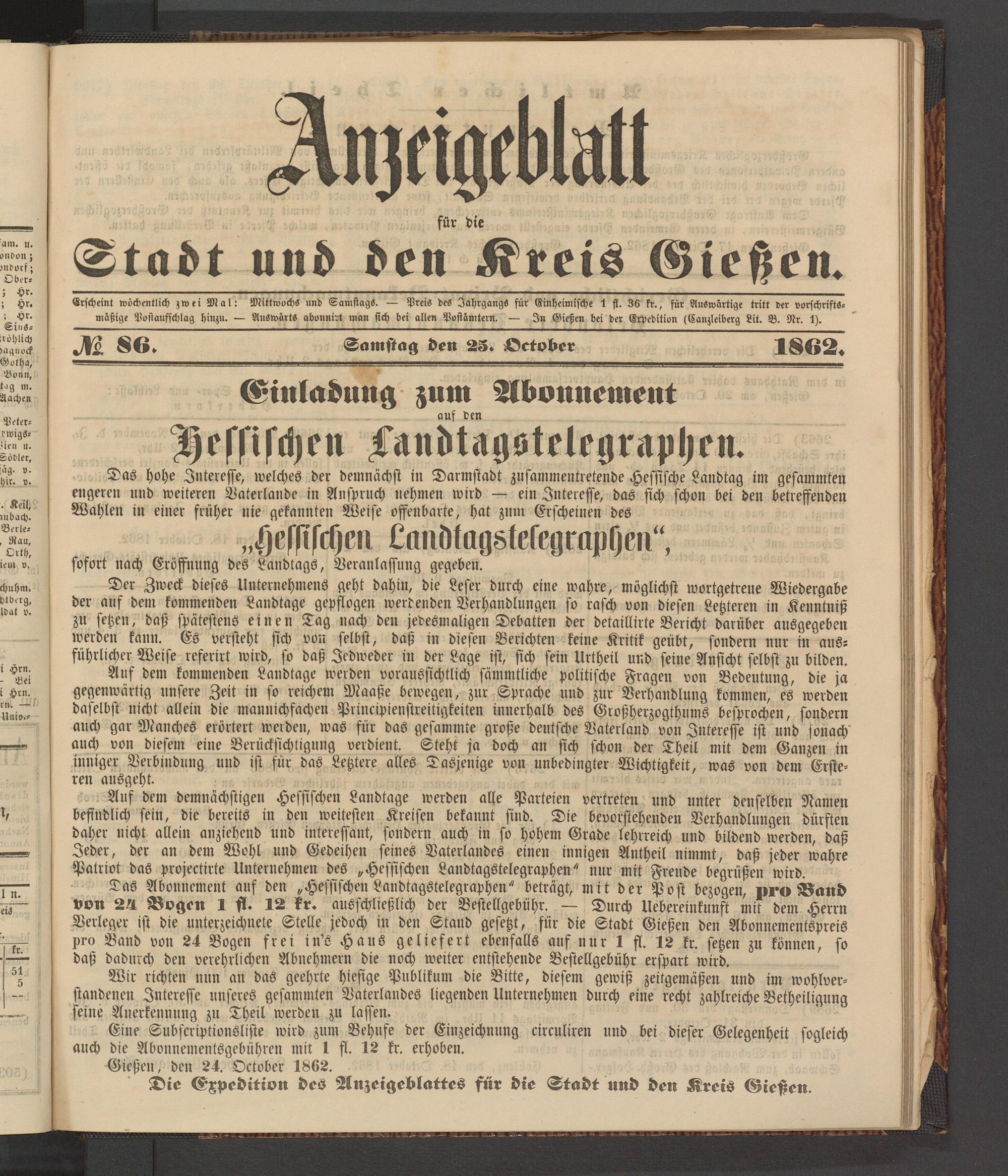 Anzeigeblatt für die Provinzialhauptstadt Gießen. 1840-1867
