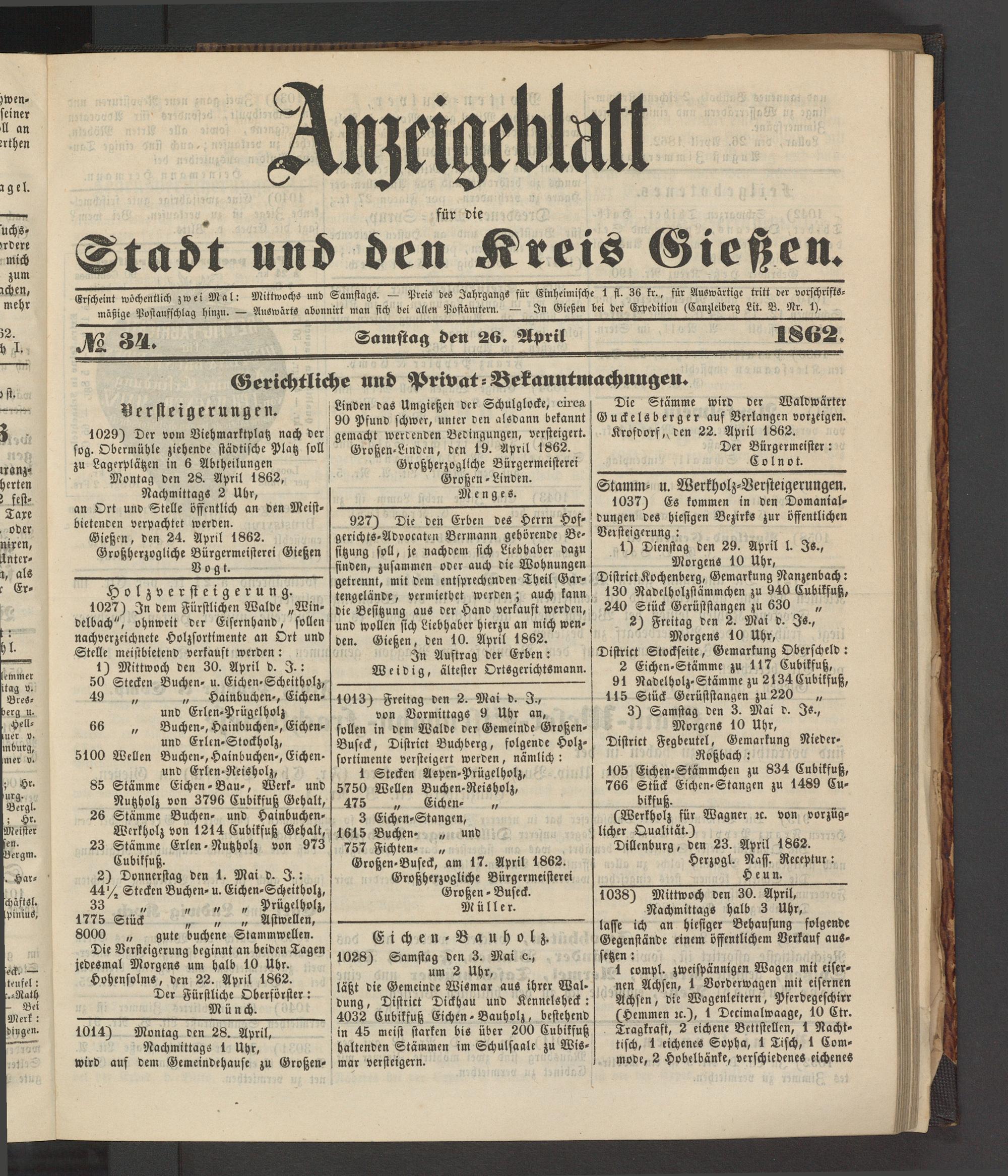 Anzeigeblatt für die Provinzialhauptstadt Gießen. 1840-1867