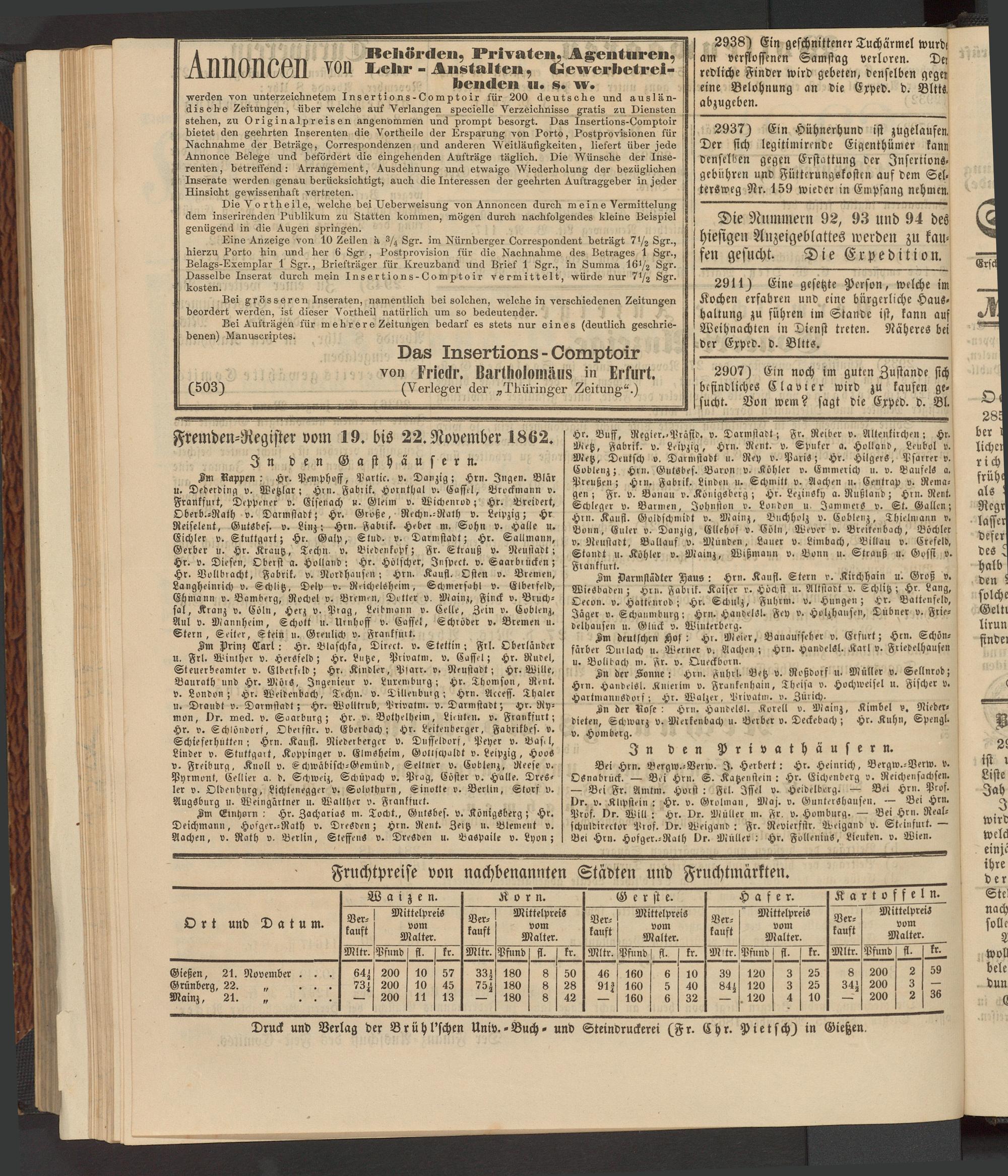 Anzeigeblatt für die Provinzialhauptstadt Gießen. 1840-1867