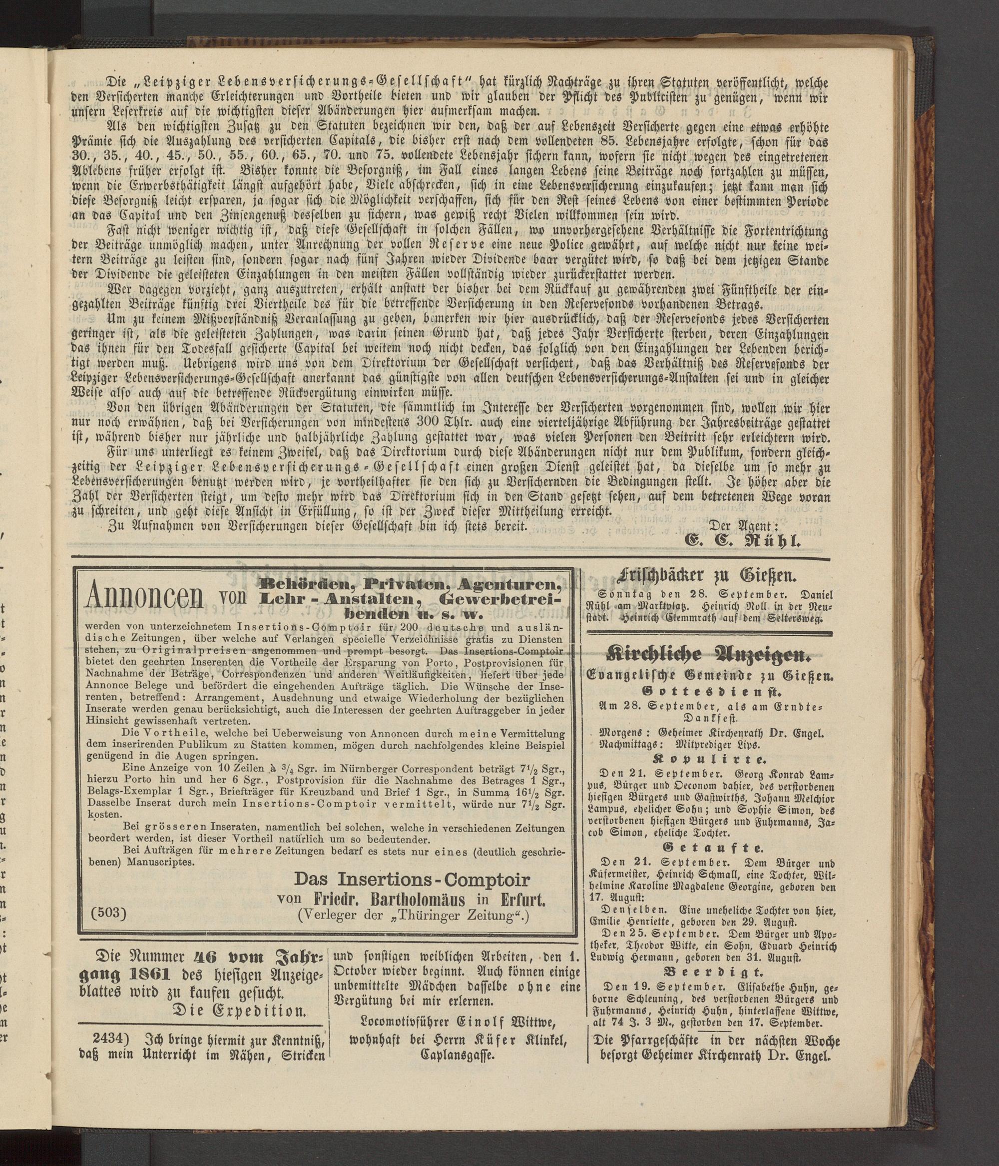 Anzeigeblatt für die Provinzialhauptstadt Gießen. 1840-1867