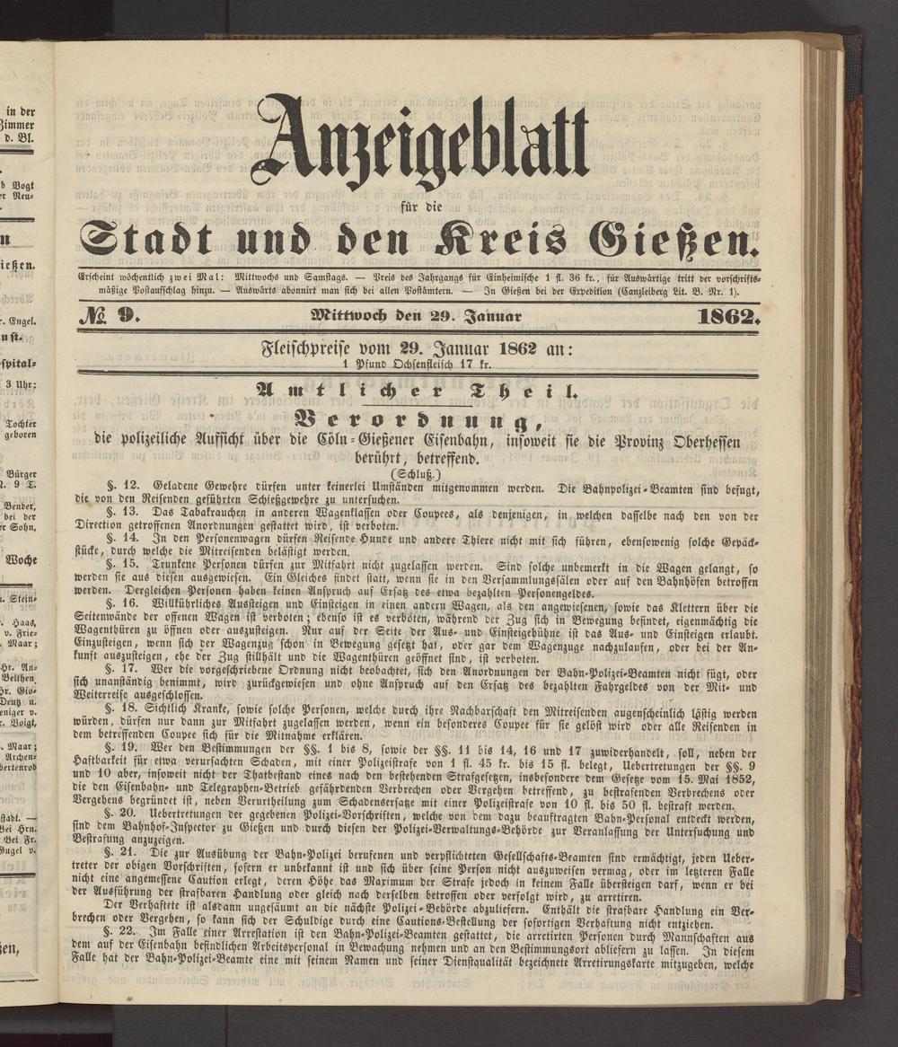 Anzeigeblatt für die Provinzialhauptstadt Gießen. 1840-1867