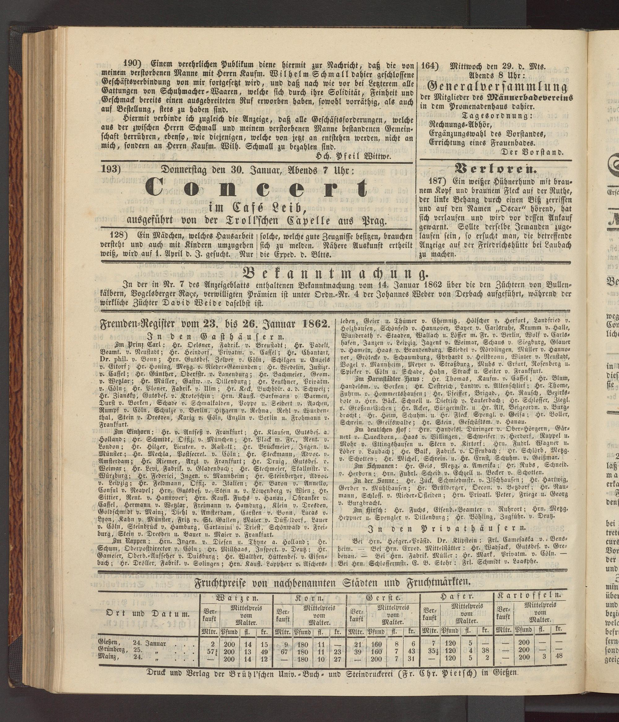 Anzeigeblatt für die Provinzialhauptstadt Gießen. 1840-1867