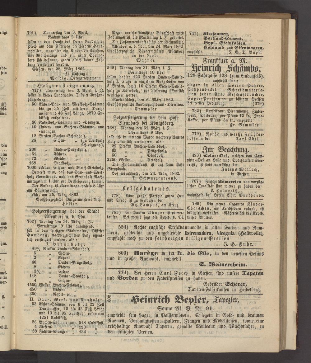 Anzeigeblatt für die Provinzialhauptstadt Gießen. 1840-1867
