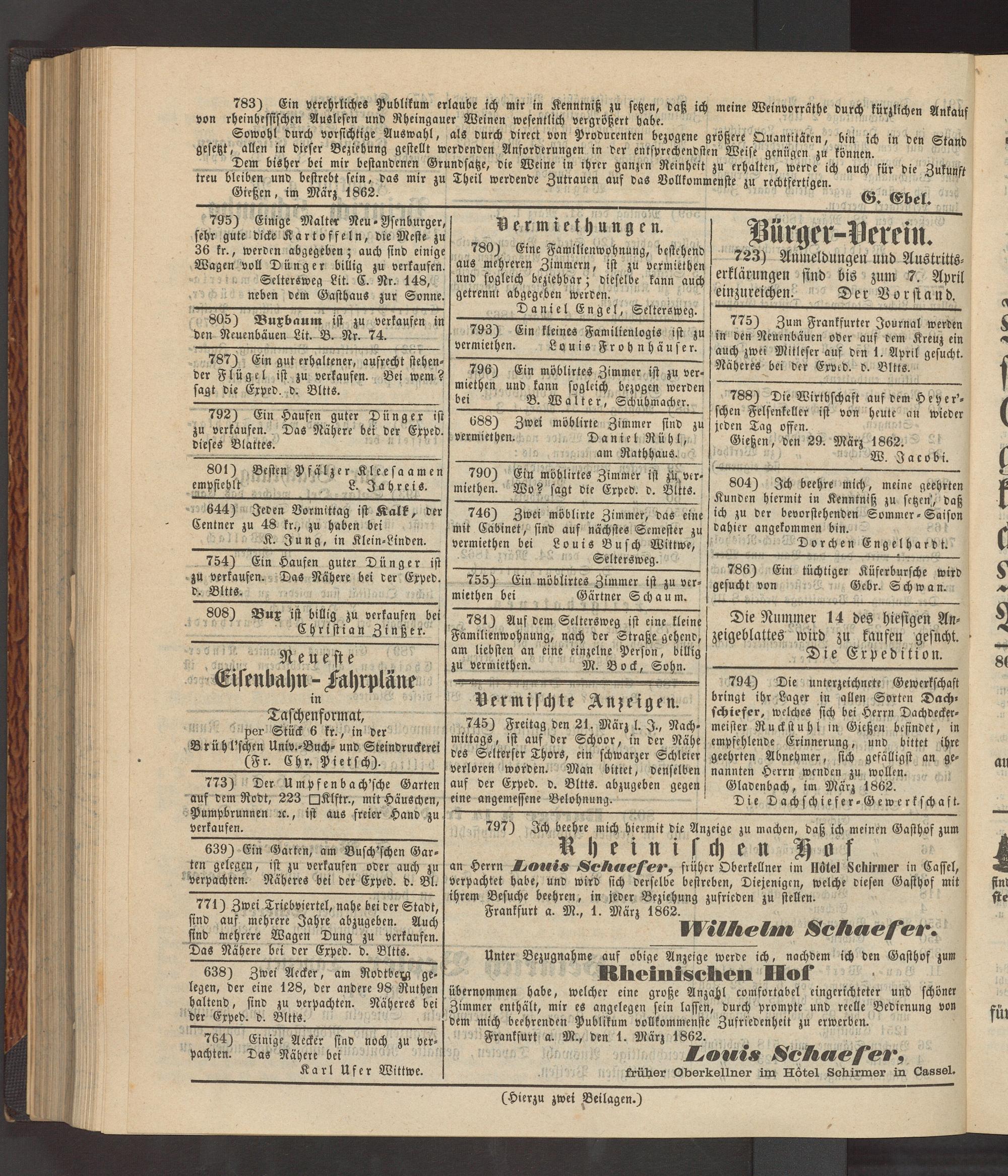 Anzeigeblatt für die Provinzialhauptstadt Gießen. 1840-1867