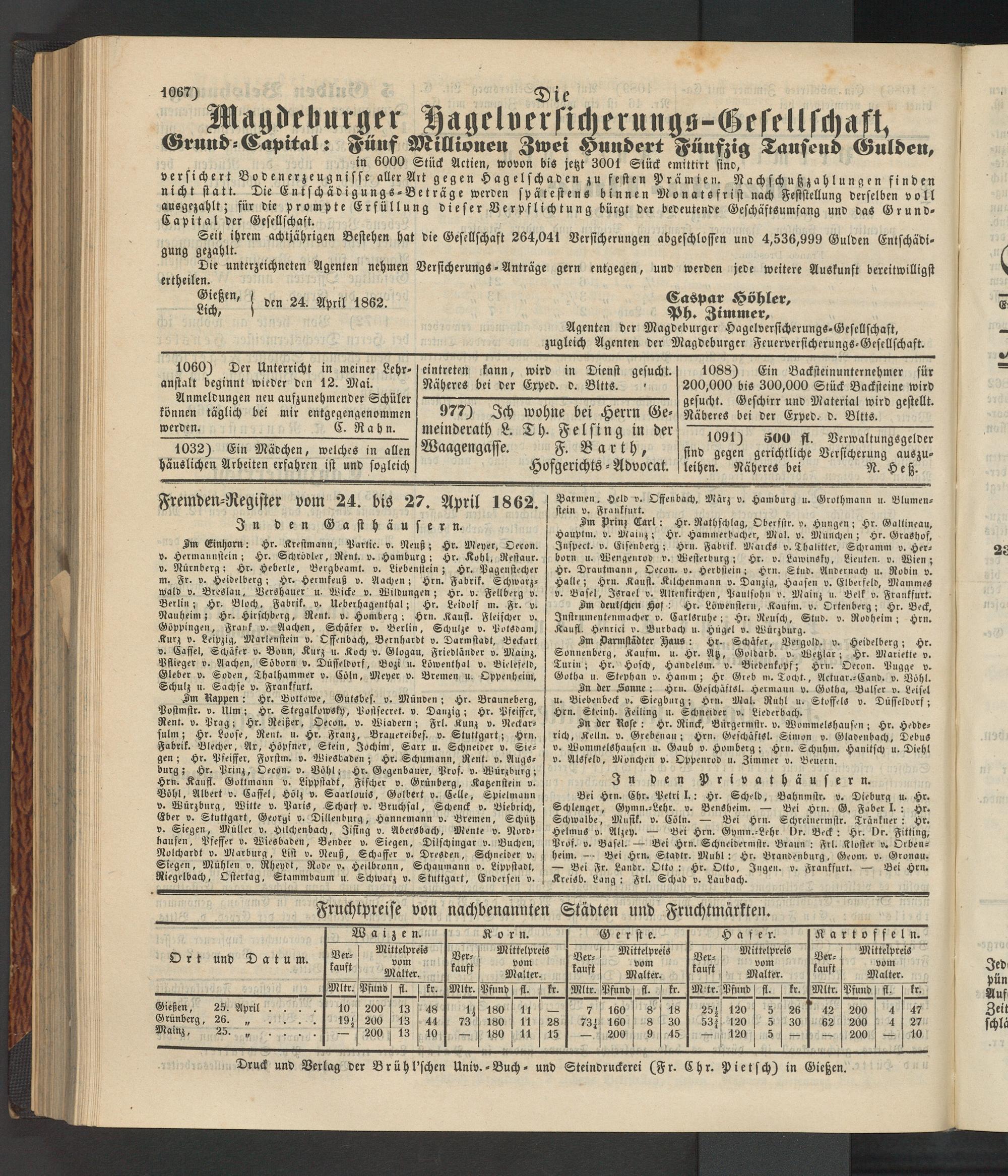 Anzeigeblatt für die Provinzialhauptstadt Gießen. 1840-1867