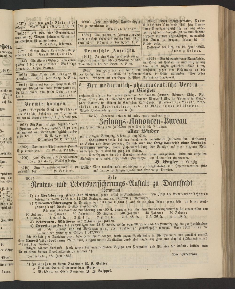 Anzeigeblatt für die Provinzialhauptstadt Gießen. 1840-1867