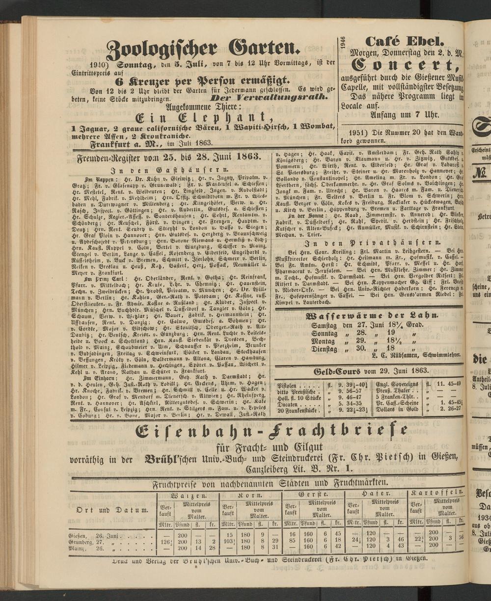 Anzeigeblatt für die Provinzialhauptstadt Gießen. 1840-1867