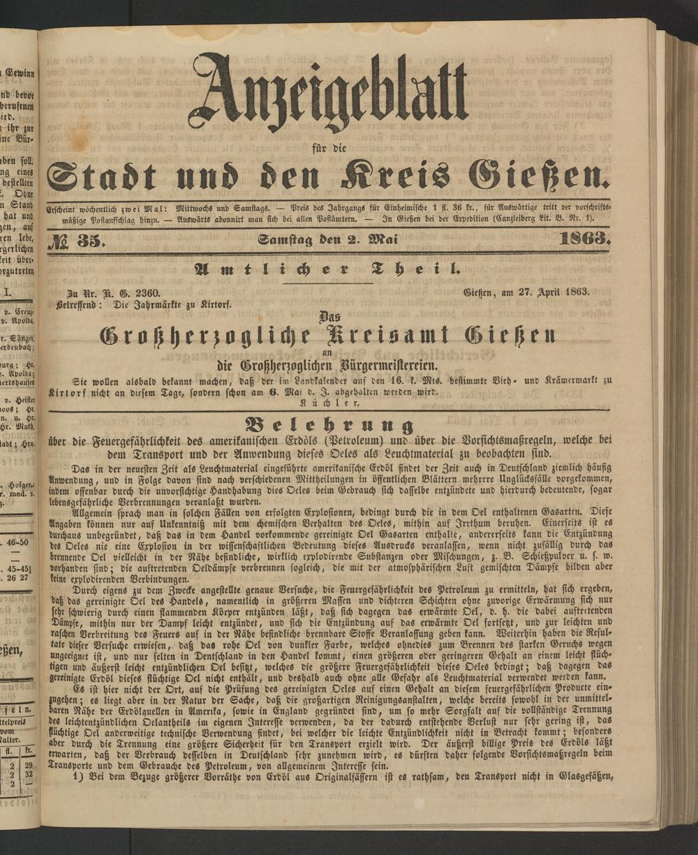 Anzeigeblatt für die Provinzialhauptstadt Gießen. 1840-1867