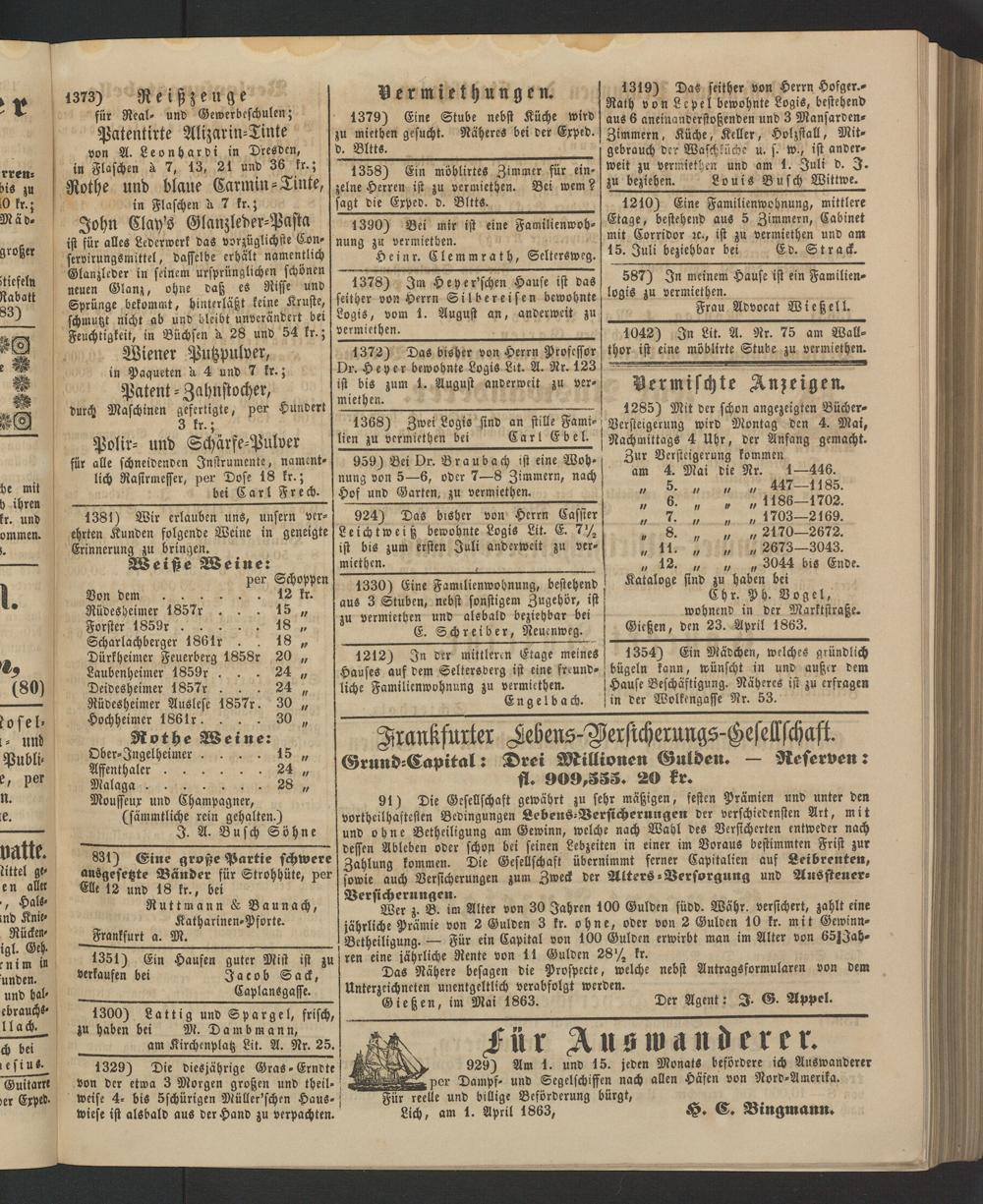 Anzeigeblatt für die Provinzialhauptstadt Gießen. 1840-1867