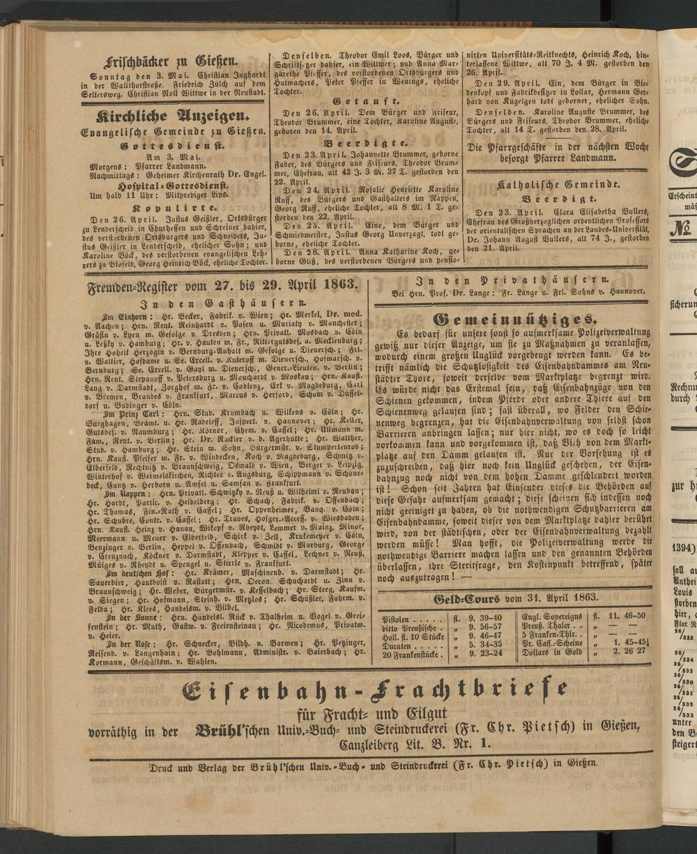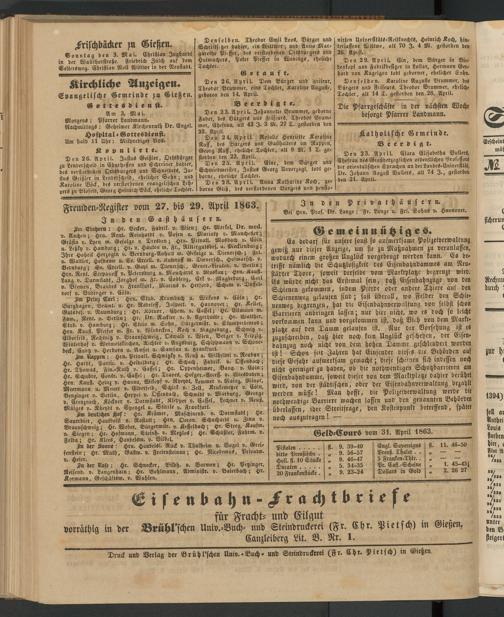 Anzeigeblatt für die Provinzialhauptstadt Gießen. 1840-1867
