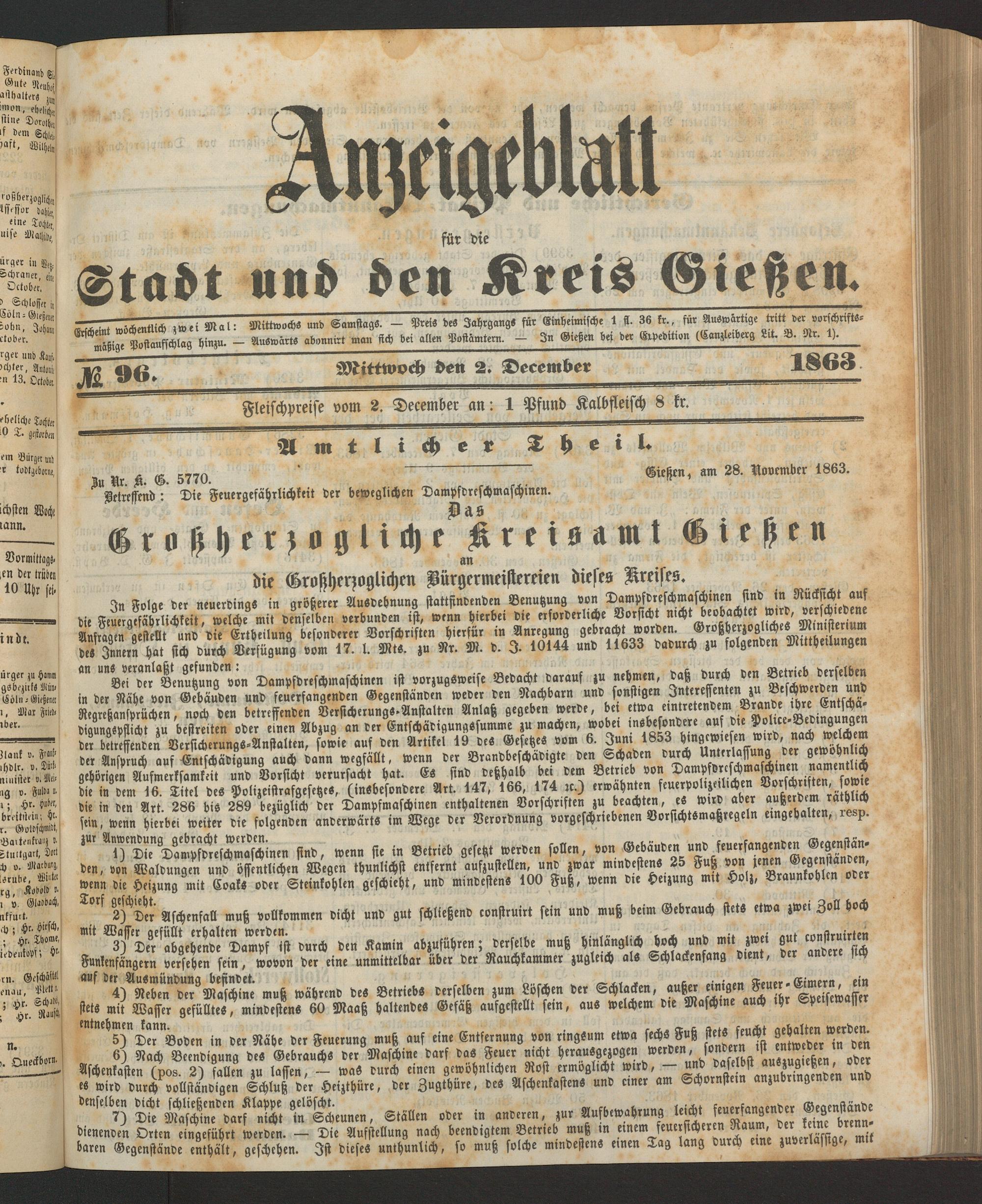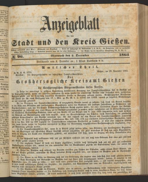 Anzeigeblatt für die Provinzialhauptstadt Gießen. 1840-1867