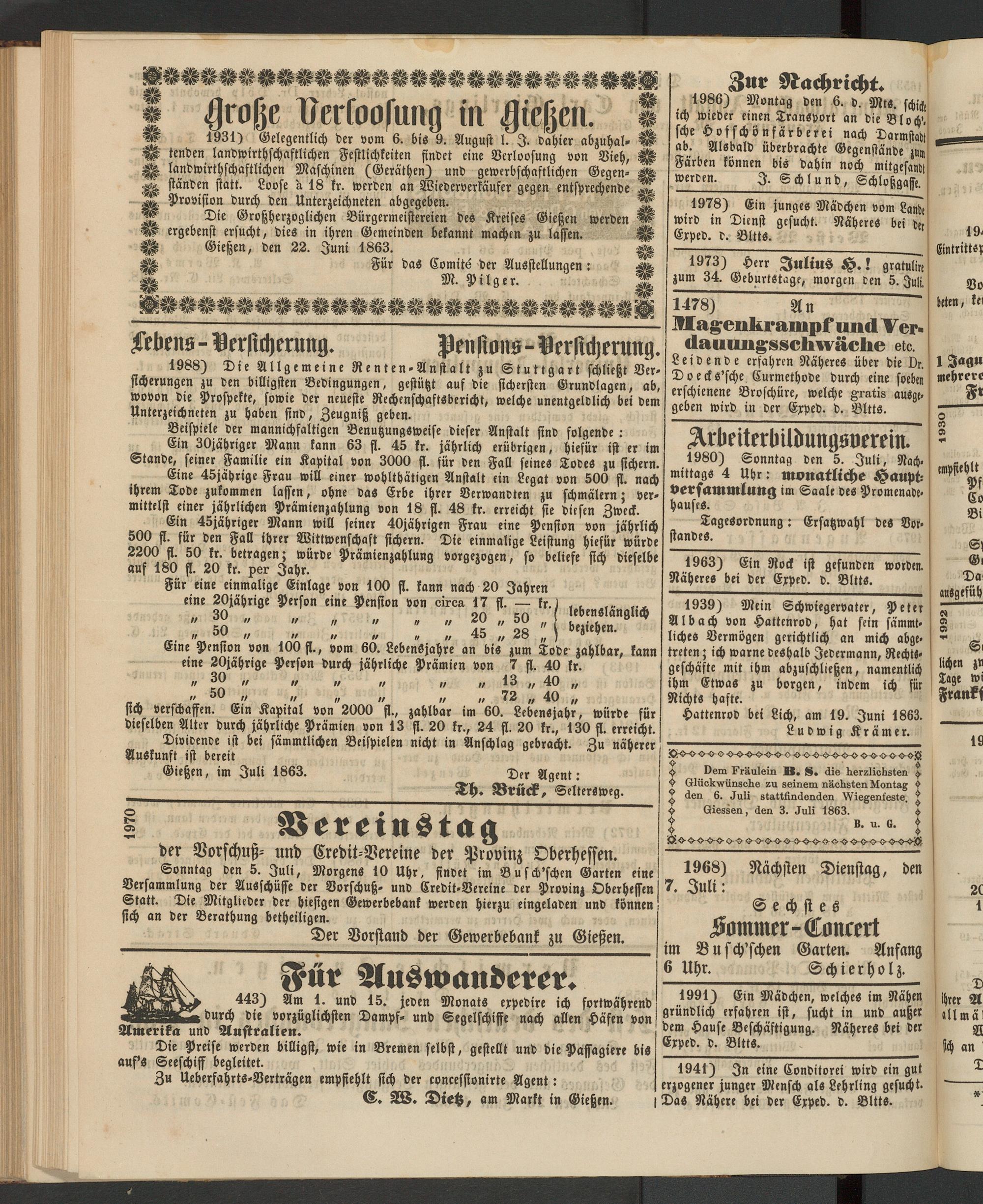 Anzeigeblatt für die Provinzialhauptstadt Gießen. 1840-1867