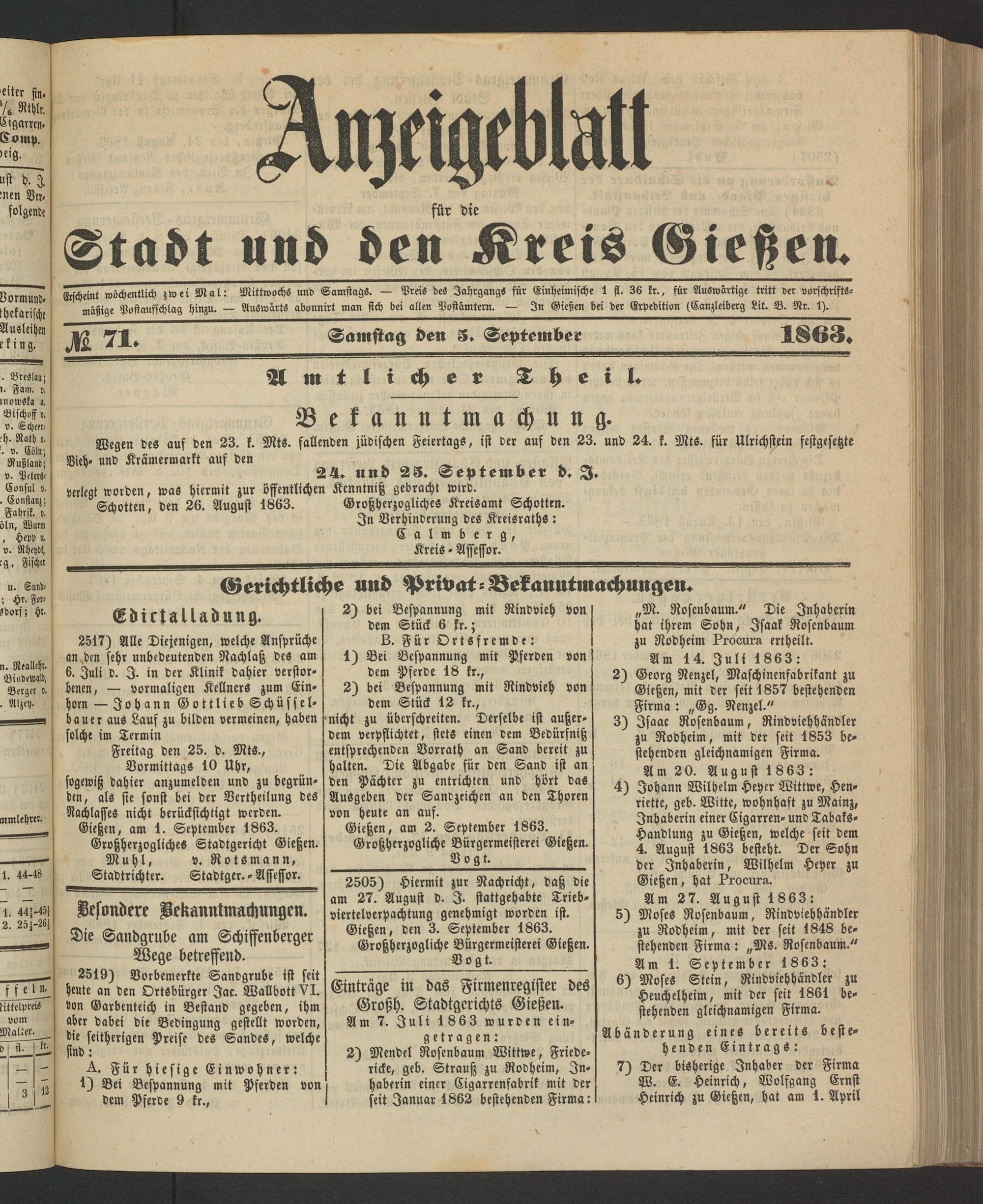 Anzeigeblatt für die Provinzialhauptstadt Gießen. 1840-1867