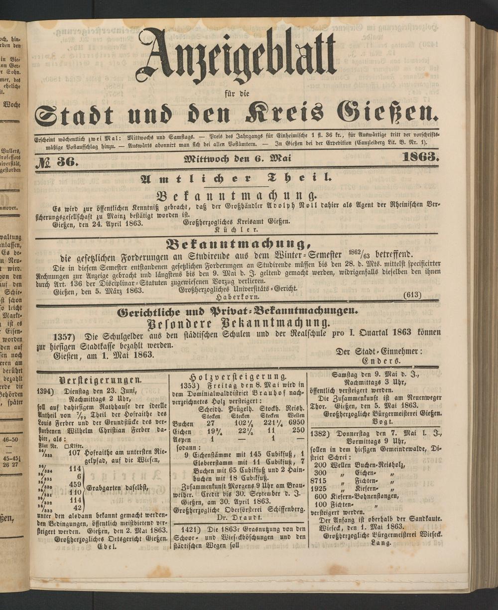 Anzeigeblatt für die Provinzialhauptstadt Gießen. 1840-1867