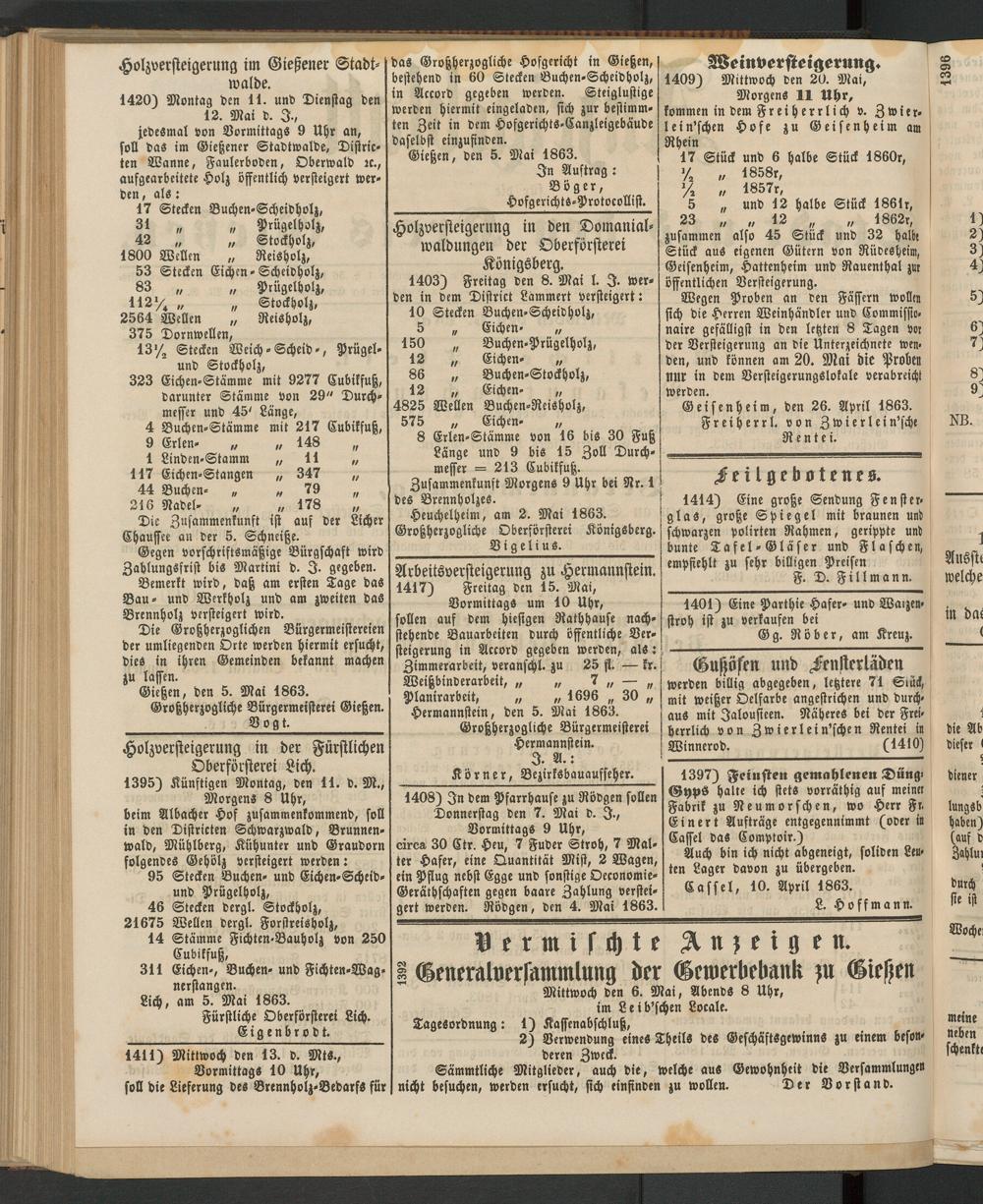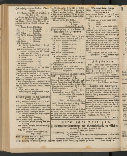 Anzeigeblatt für die Provinzialhauptstadt Gießen. 1840-1867