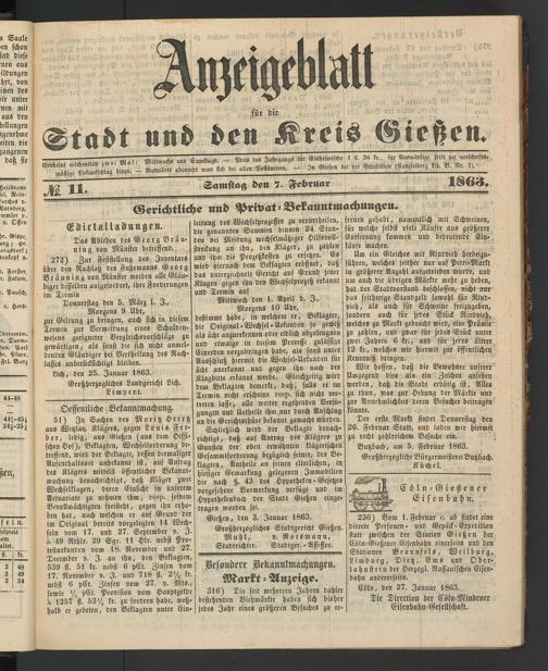 Anzeigeblatt für die Provinzialhauptstadt Gießen. 1840-1867