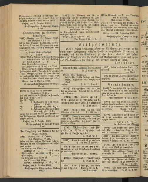 Anzeigeblatt für die Provinzialhauptstadt Gießen. 1840-1867