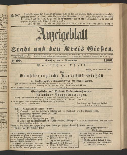 Anzeigeblatt für die Provinzialhauptstadt Gießen. 1840-1867