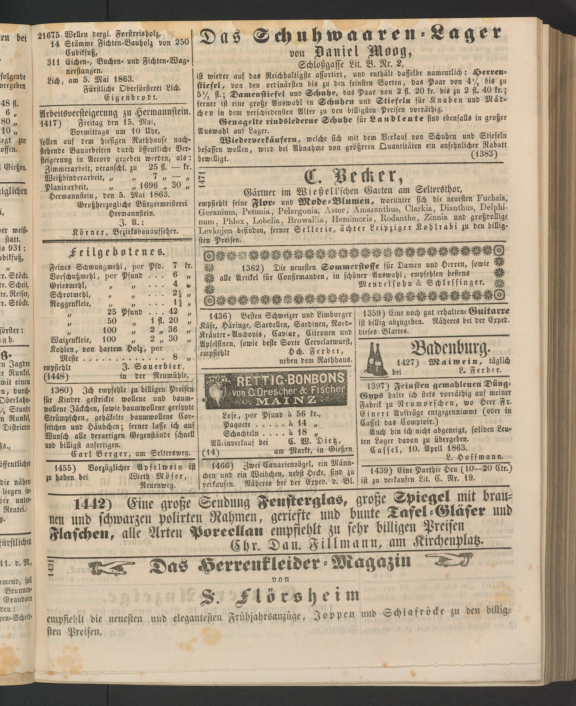Anzeigeblatt für die Provinzialhauptstadt Gießen. 1840-1867