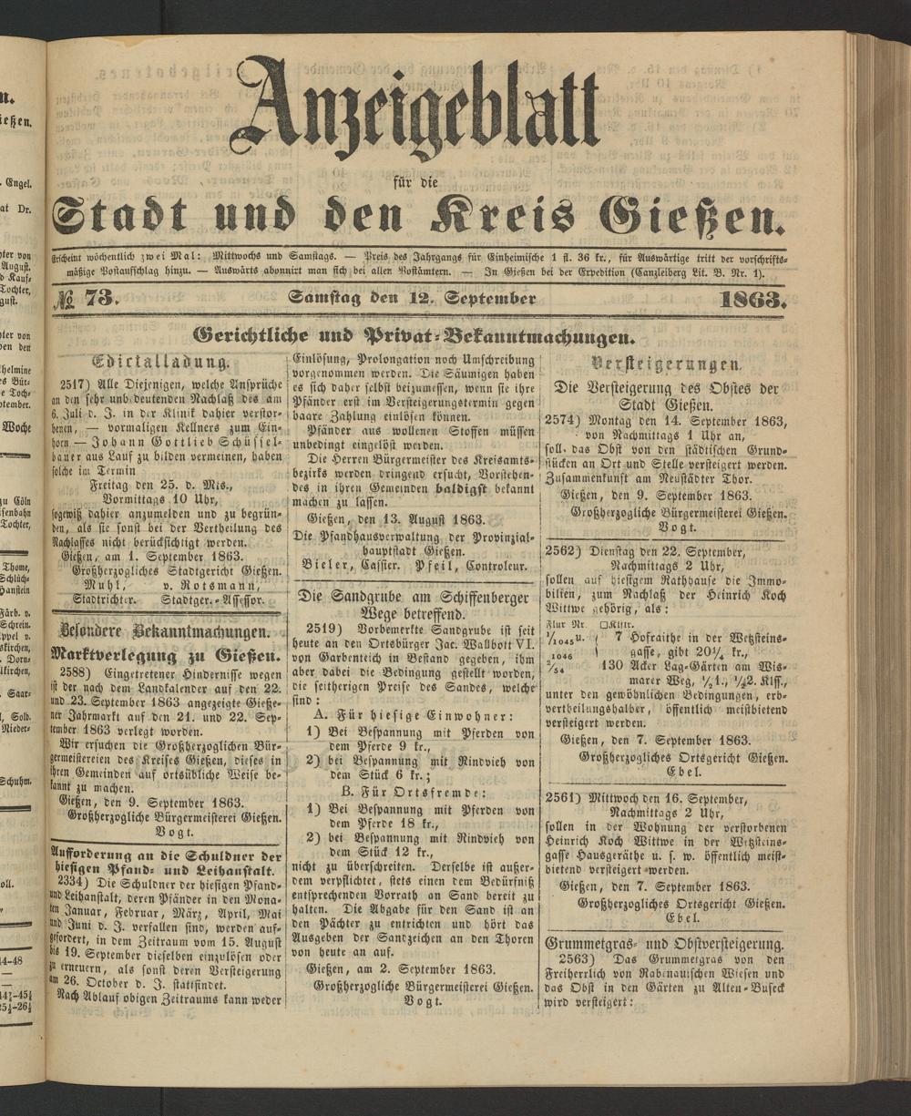 Anzeigeblatt für die Provinzialhauptstadt Gießen. 1840-1867