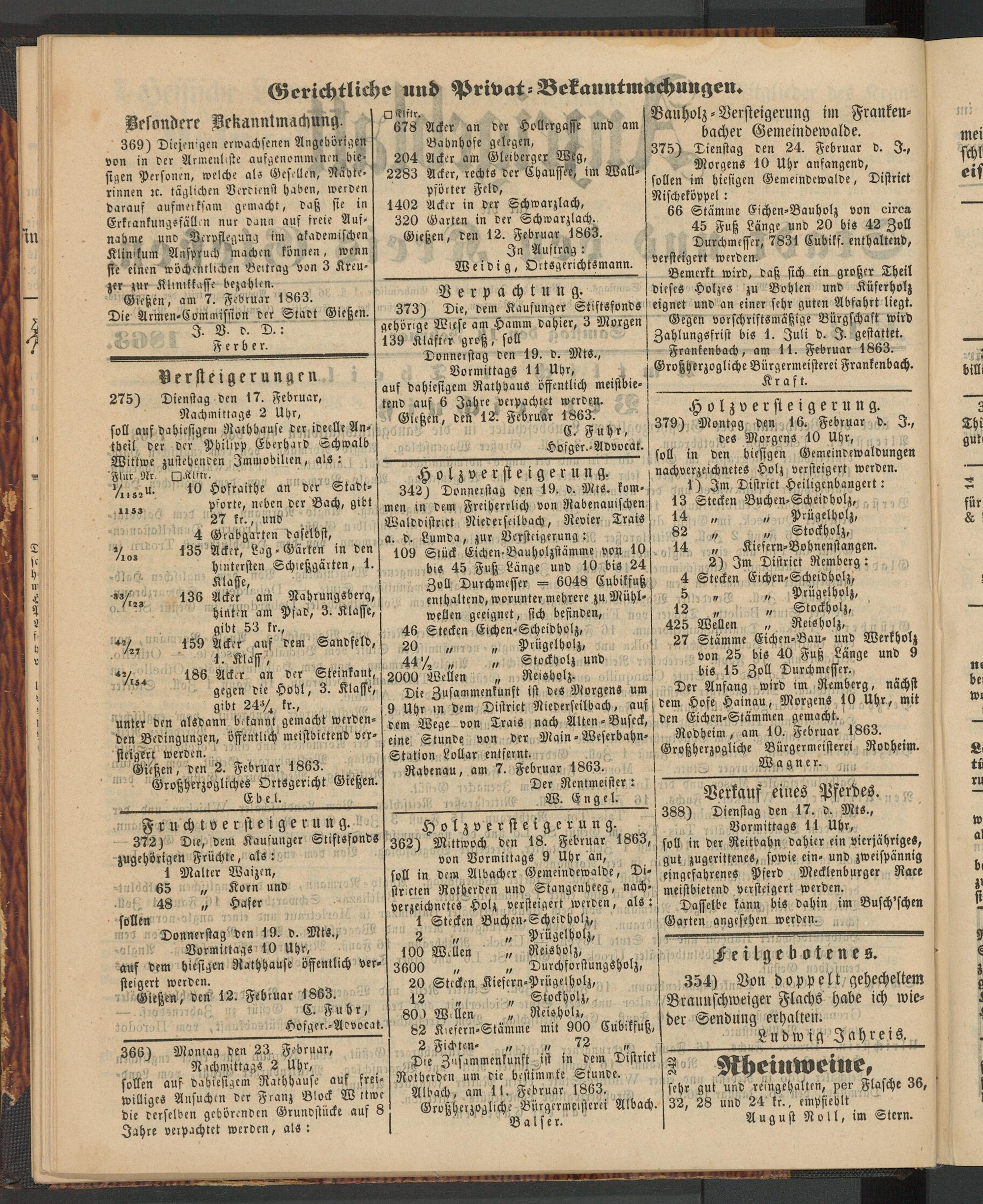 Anzeigeblatt für die Provinzialhauptstadt Gießen. 1840-1867