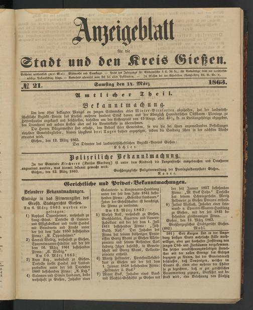 Anzeigeblatt für die Provinzialhauptstadt Gießen. 1840-1867