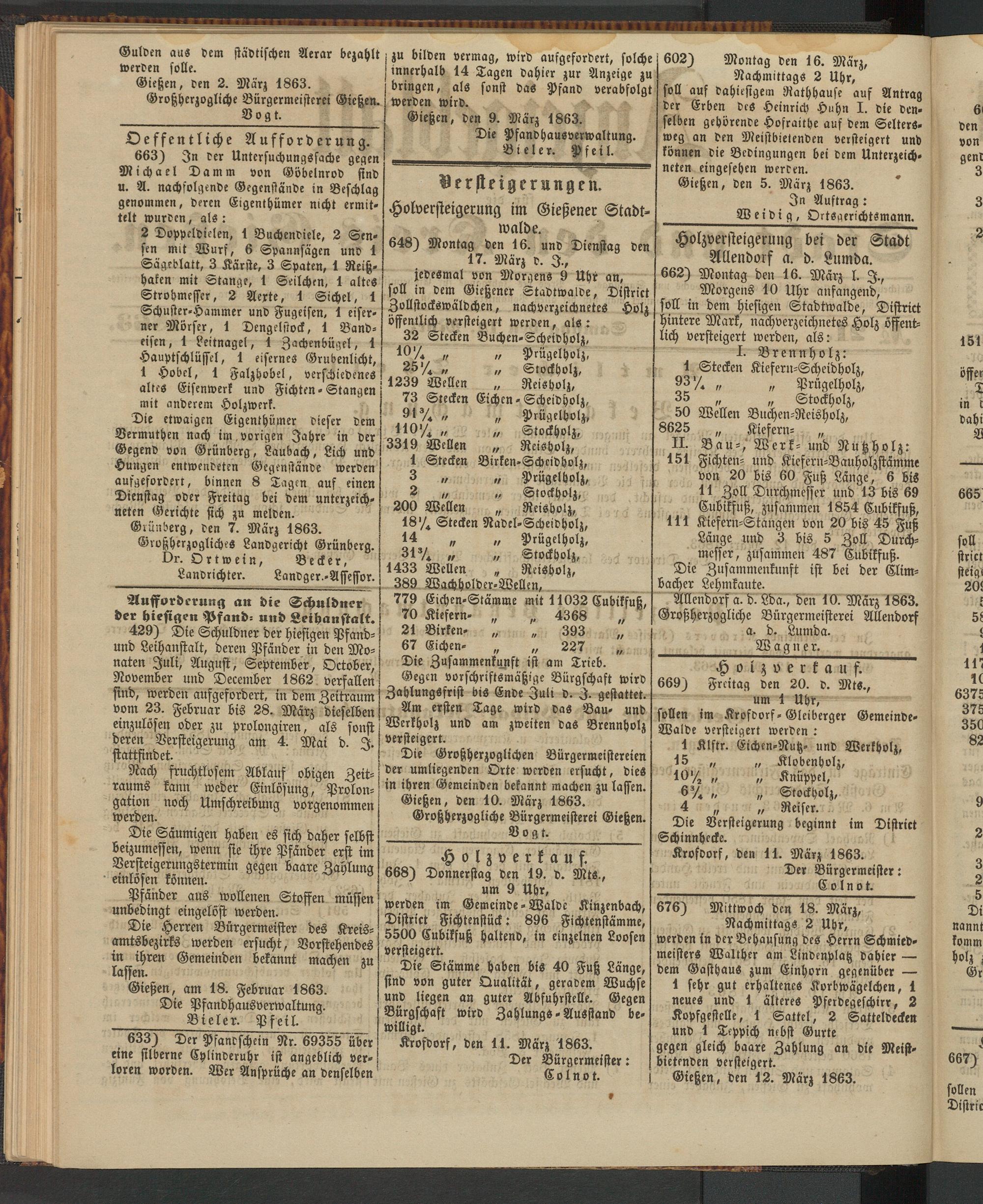 Anzeigeblatt für die Provinzialhauptstadt Gießen. 1840-1867